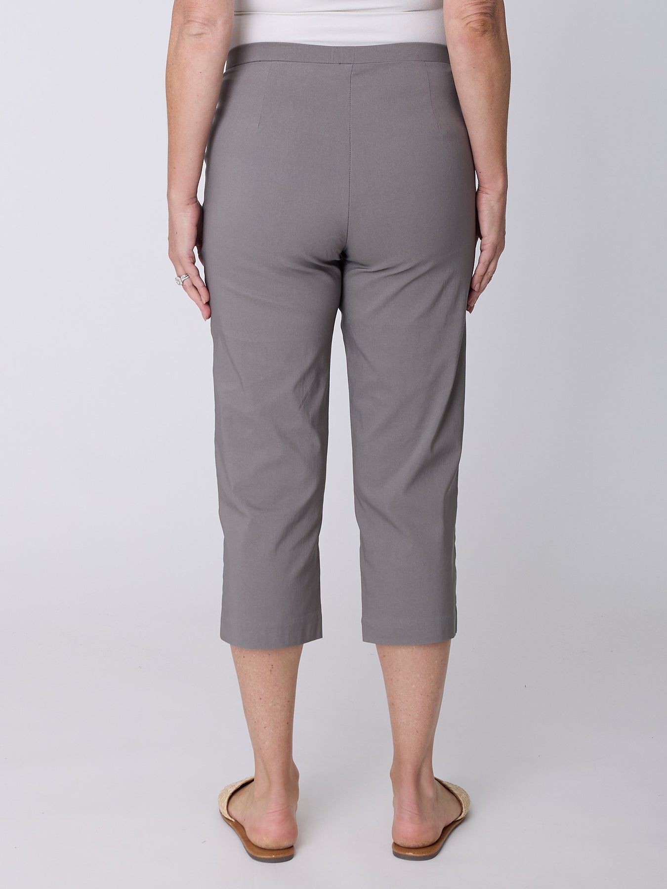 These 3/4 navy pants feature a comfortable pull-on design with a wider yoke and stretch bengaline fabric, offering both style and ease. The flattering length falls just below the knee, making them ideal for petite figures or casual outings. Perfect for golf or relaxed weekends, they combine functionality with a chic, effortless look.
