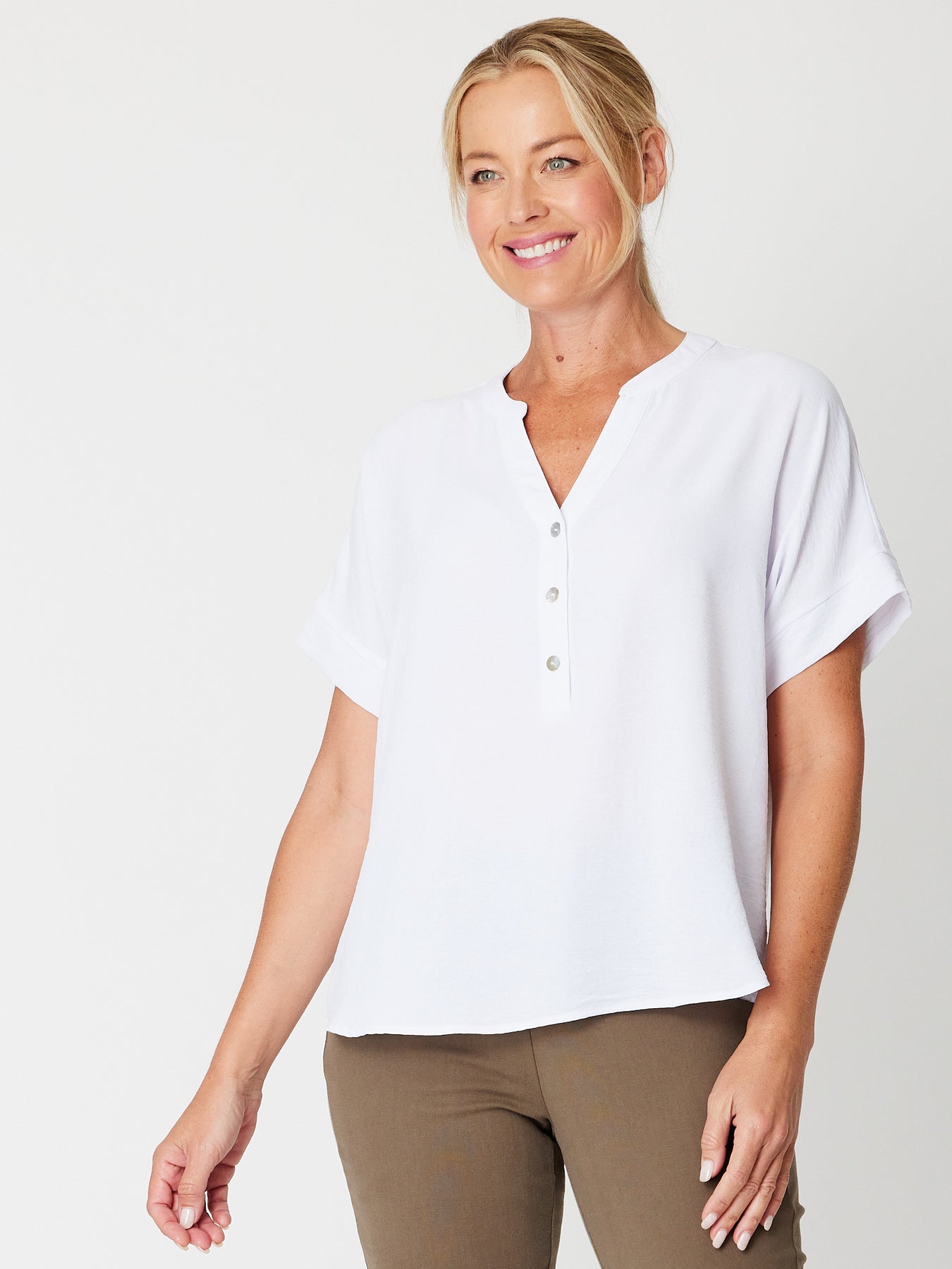 Elevate your wardrobe with this versatile Core Top. Crafted from innovative mechanical stretch fabric, it moves with you for all-day comfort and confidence. The classic nehru collar and short sleeves deliver timeless style, while the 1/2 button-through front makes it effortlessly adaptable—wear it polished for the office or relaxed for weekend outings. Perfect for those who demand both sophistication and practicality in their everyday essentials.