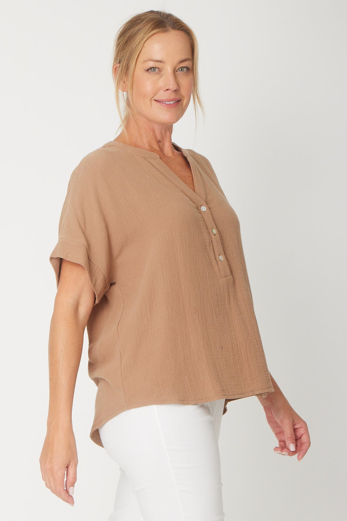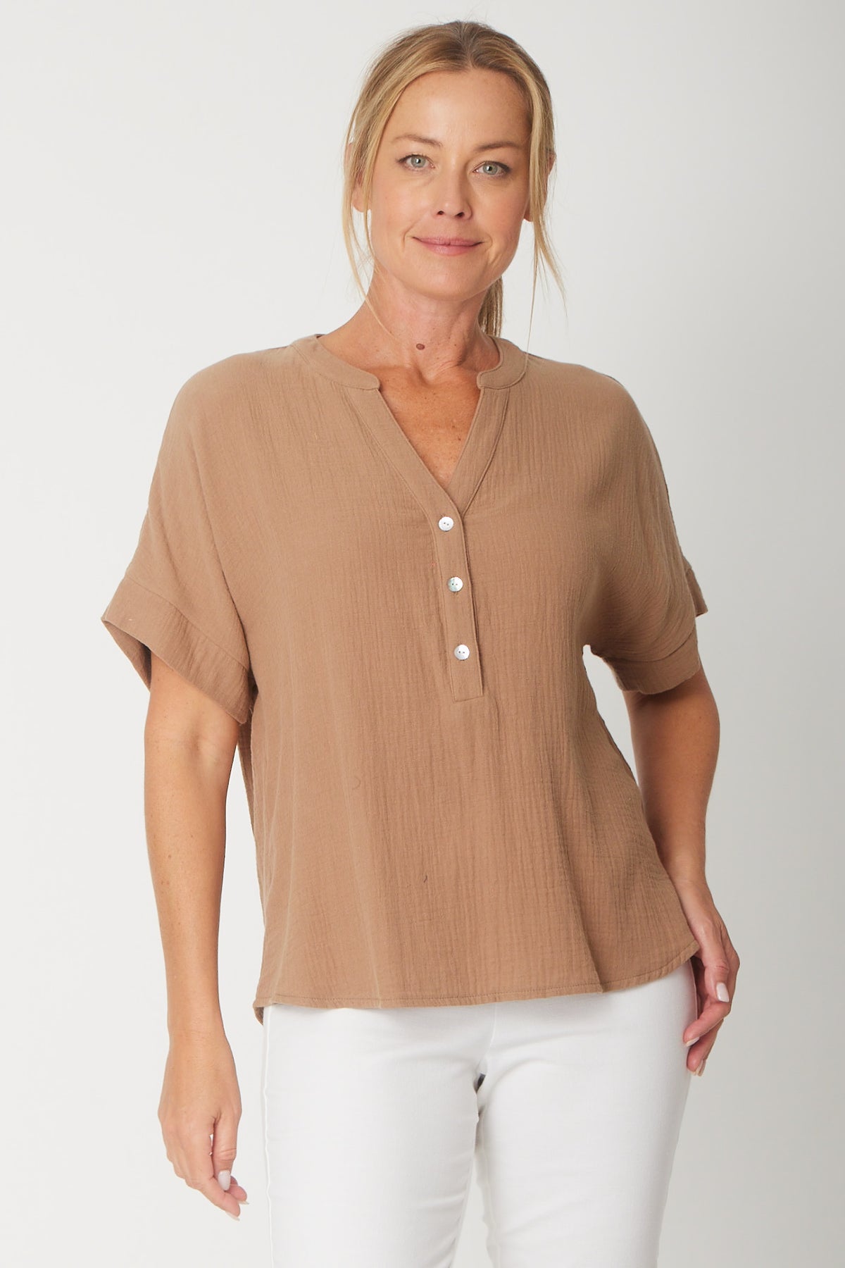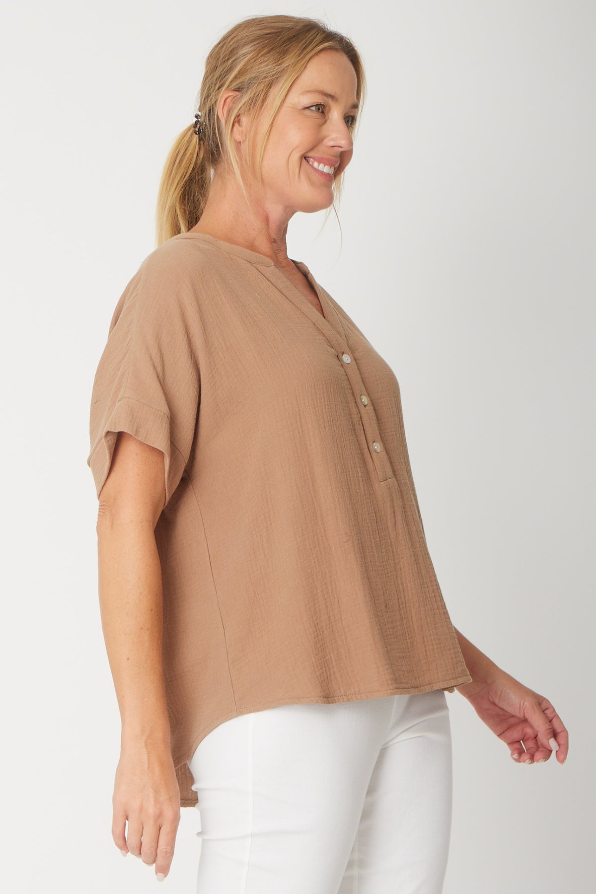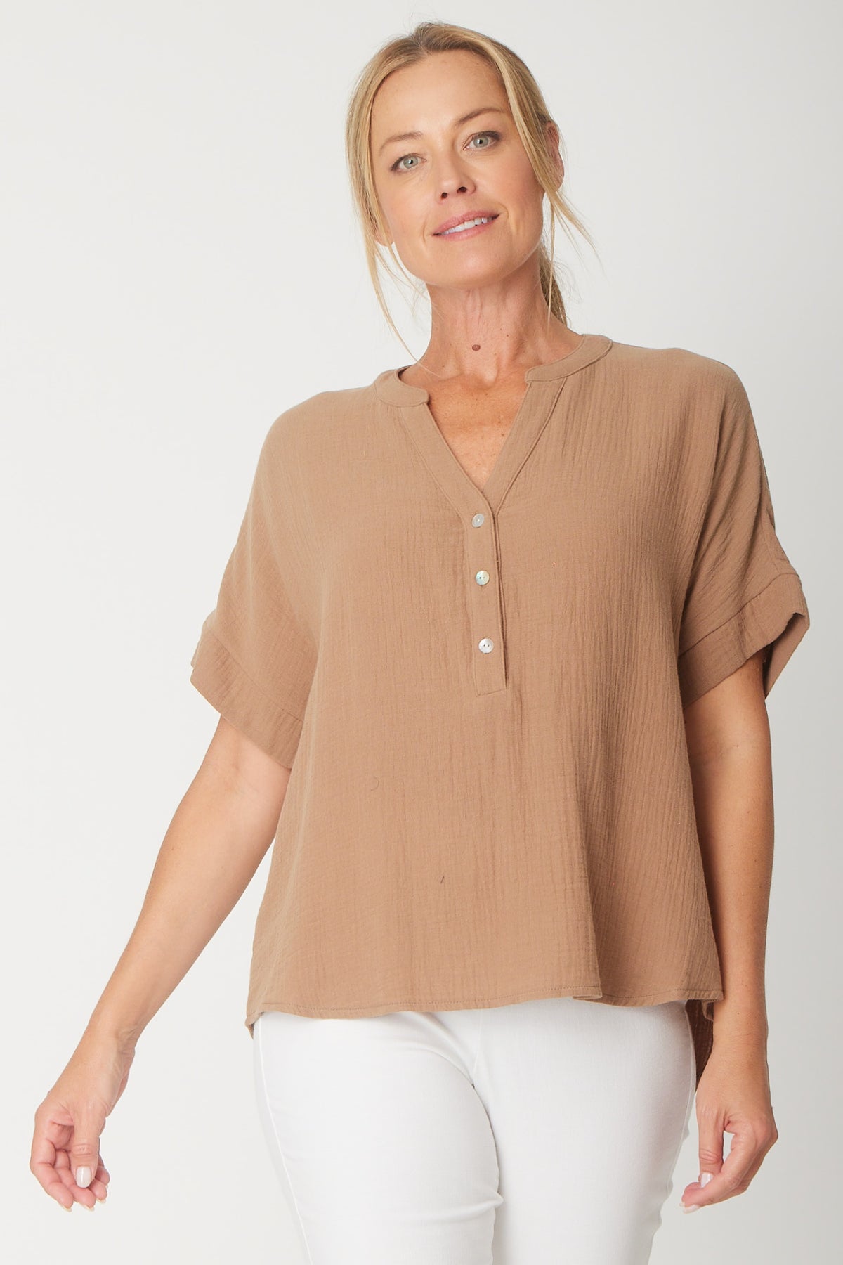 Experience ultimate comfort with our Grandpa Top in vibrant colours. Crafted from our favourite bonded cotton fabric, it offers a cool, breathable feel perfect for warmer days. The relaxed fit, stylish buttons, and unique neckline combine for a casual yet polished look. Bright colours and thoughtfully designed sleeves keep you comfortable and effortlessly chic all day long.