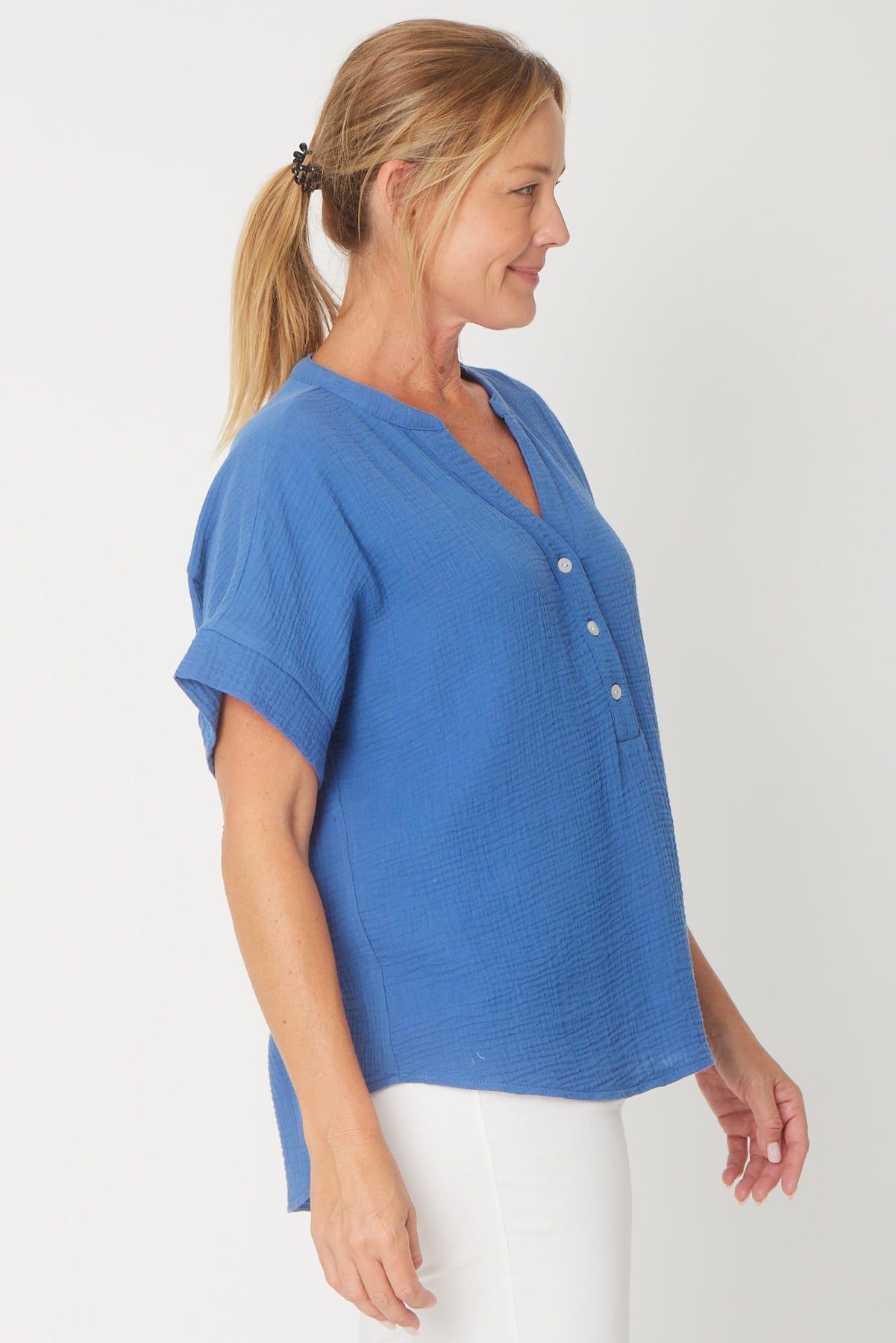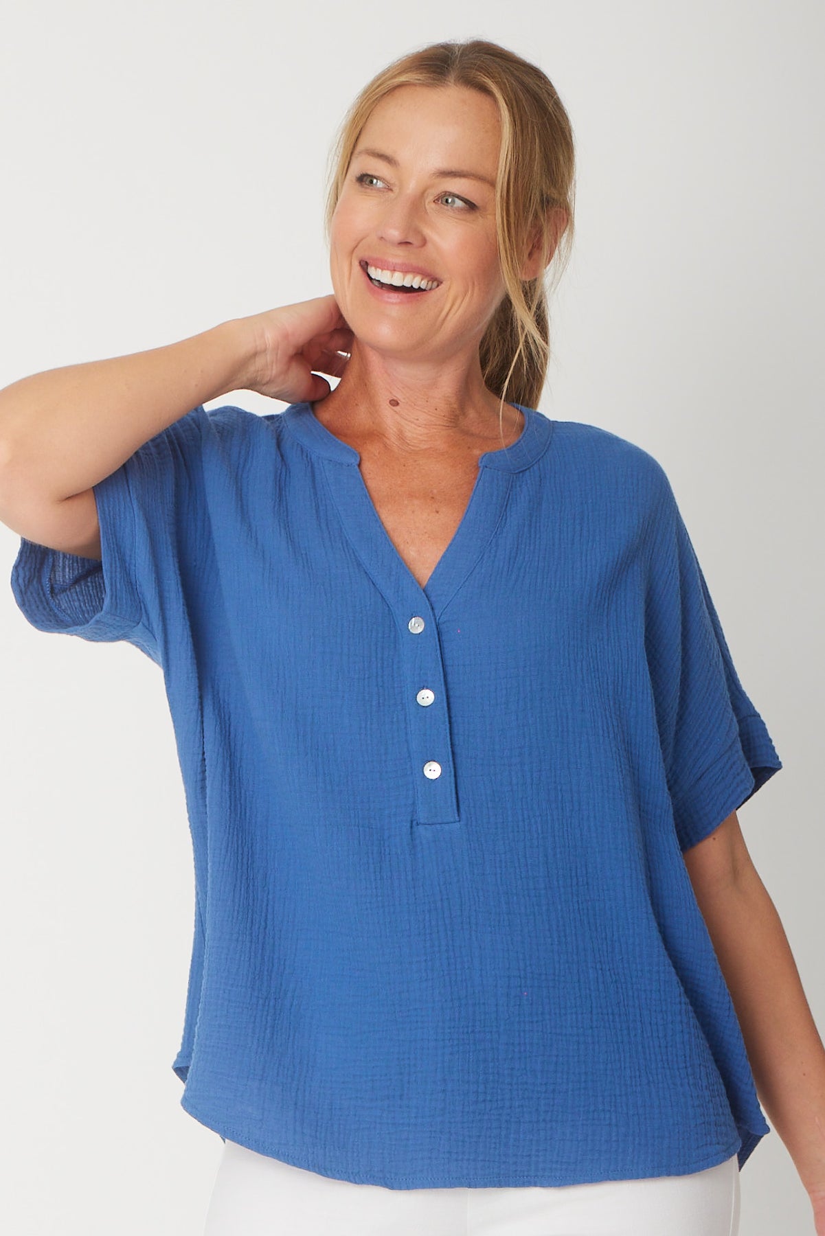 Experience ultimate comfort with our Grandpa Top in vibrant colours. Crafted from our favourite bonded cotton fabric, it offers a cool, breathable feel perfect for warmer days. The relaxed fit, stylish buttons, and unique neckline combine for a casual yet polished look. Bright colours and thoughtfully designed sleeves keep you comfortable and effortlessly chic all day long.