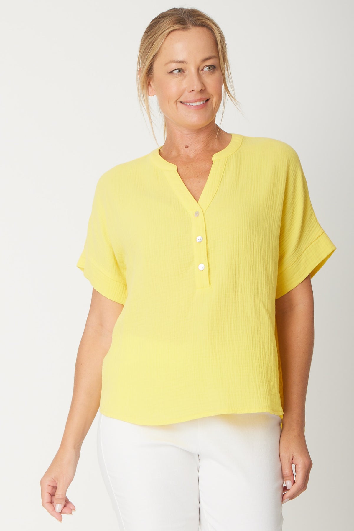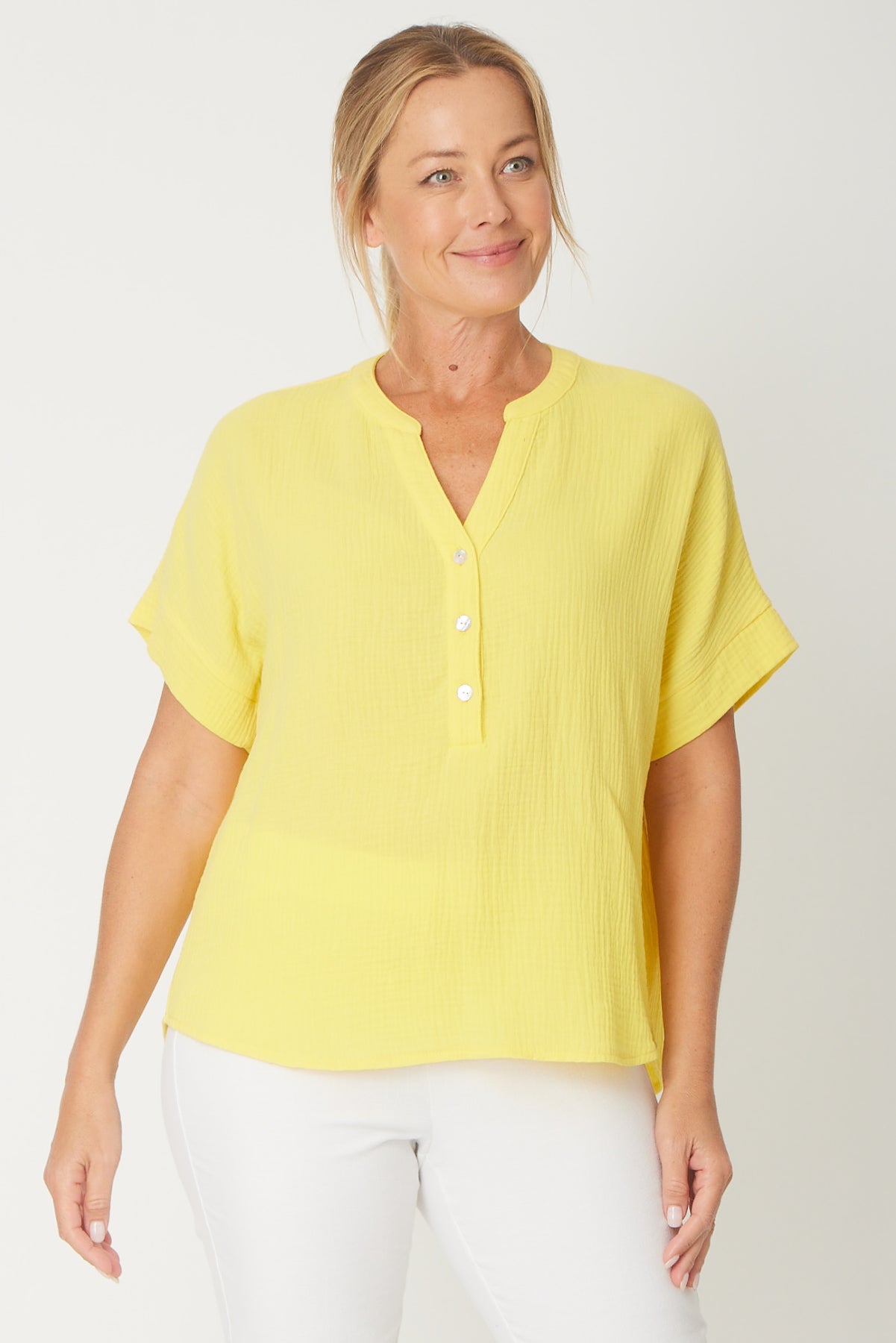 Experience ultimate comfort with our Grandpa Top in vibrant colours. Crafted from our favourite bonded cotton fabric, it offers a cool, breathable feel perfect for warmer days. The relaxed fit, stylish buttons, and unique neckline combine for a casual yet polished look. Bright colours and thoughtfully designed sleeves keep you comfortable and effortlessly chic all day long.