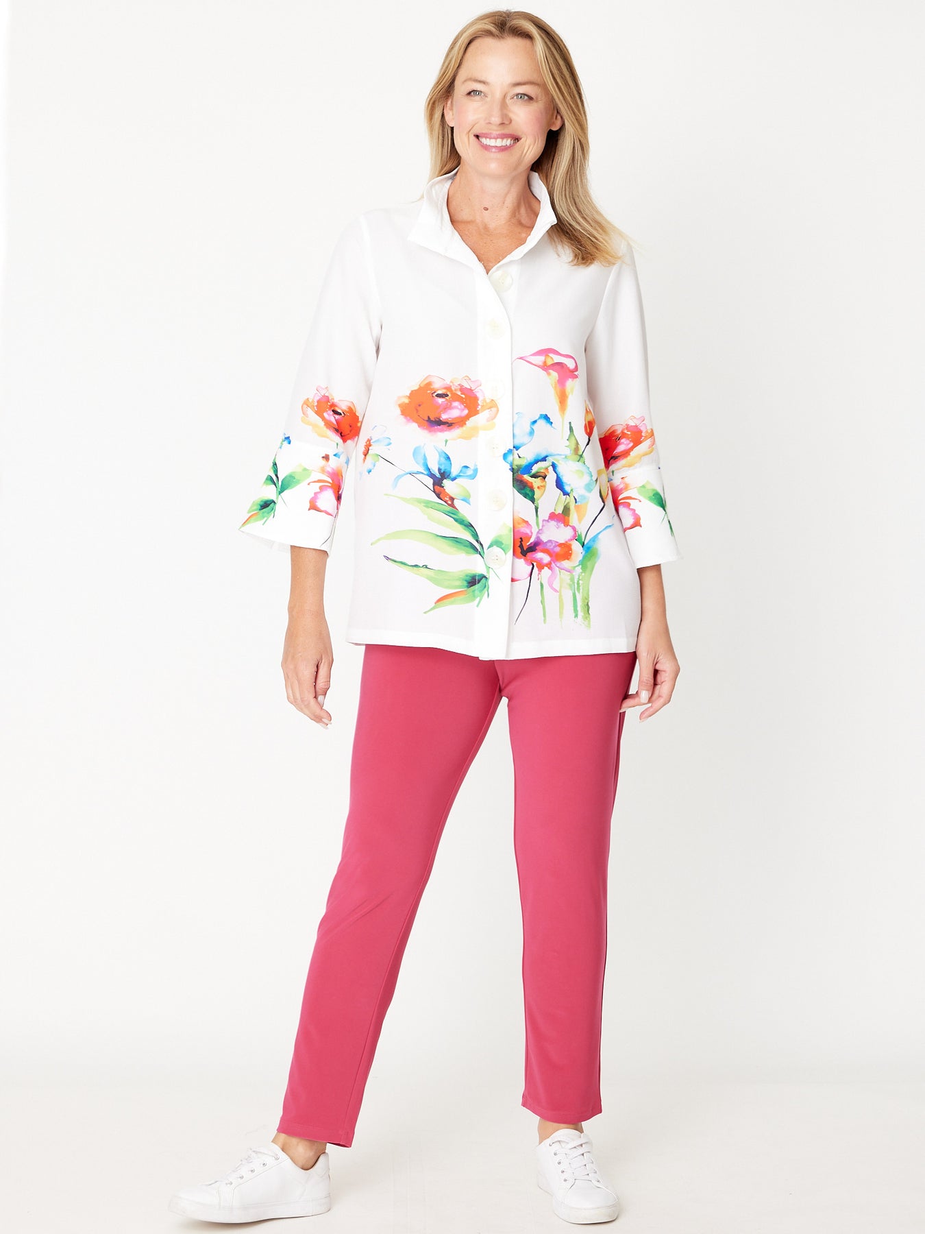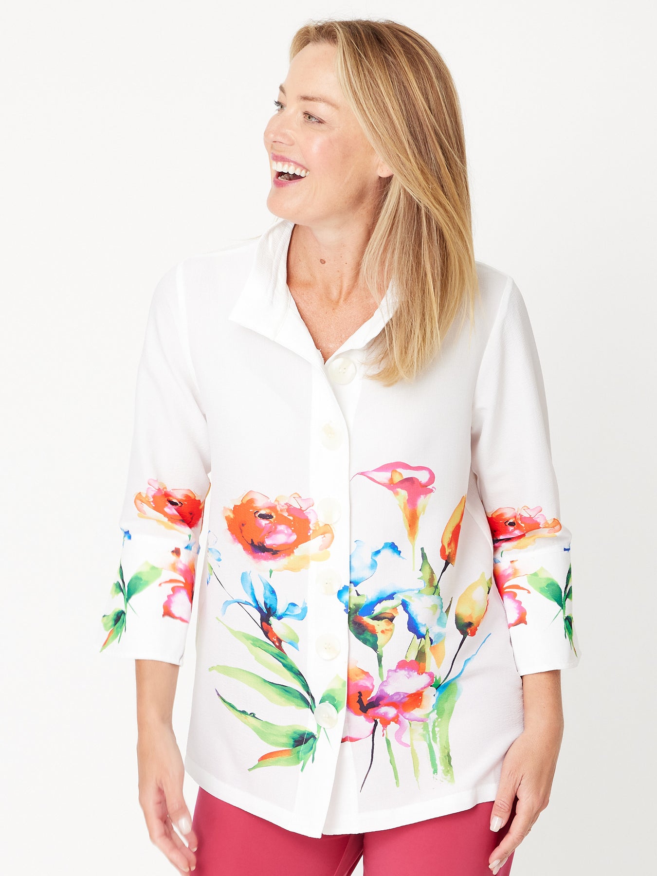This stunning Love Lilly Print Shirt features playful oversized buttons and elegant fluted 3/4 sleeves for a graceful silhouette. The standout collar, reinforced with a wire, can be styled upright or folded down to match your mood and occasion. Finished with a vibrant floral print, this shirt effortlessly adds a fresh, eye-catching touch to your wardrobe.