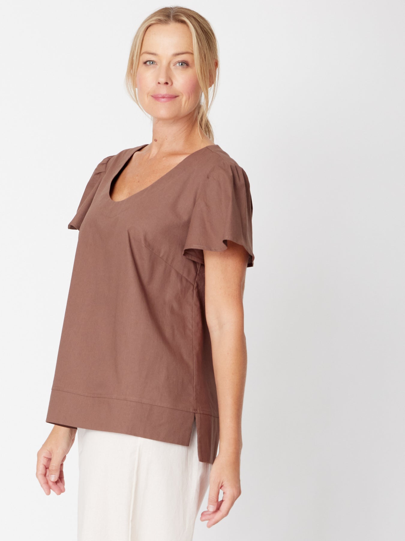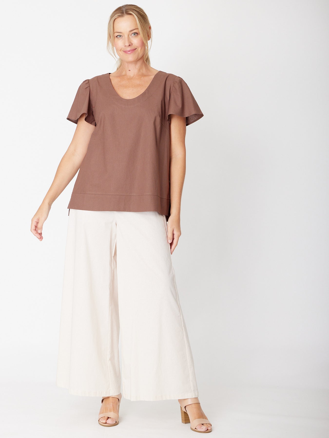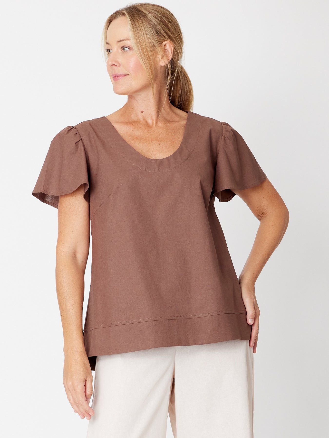 Embrace effortless style with this scoop neck cotton linen top featuring delicate fluted sleeves and a flattering swing body. Its relaxed fit ensures comfort throughout the day, while the breathable non-stretch fabric adds natural texture and durability. Perfect for both casual outings and refined looks, this top combines timeless design with modern ease.