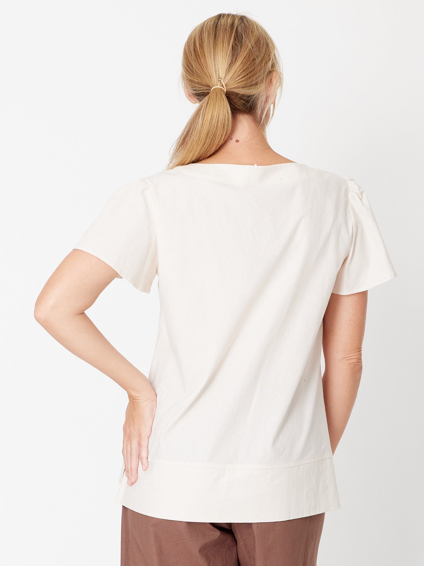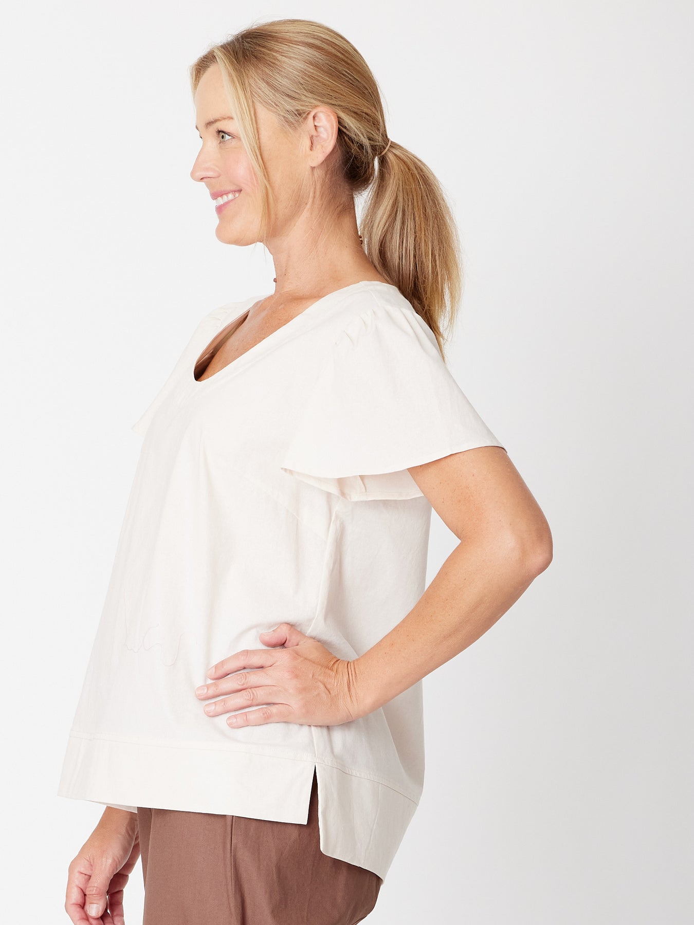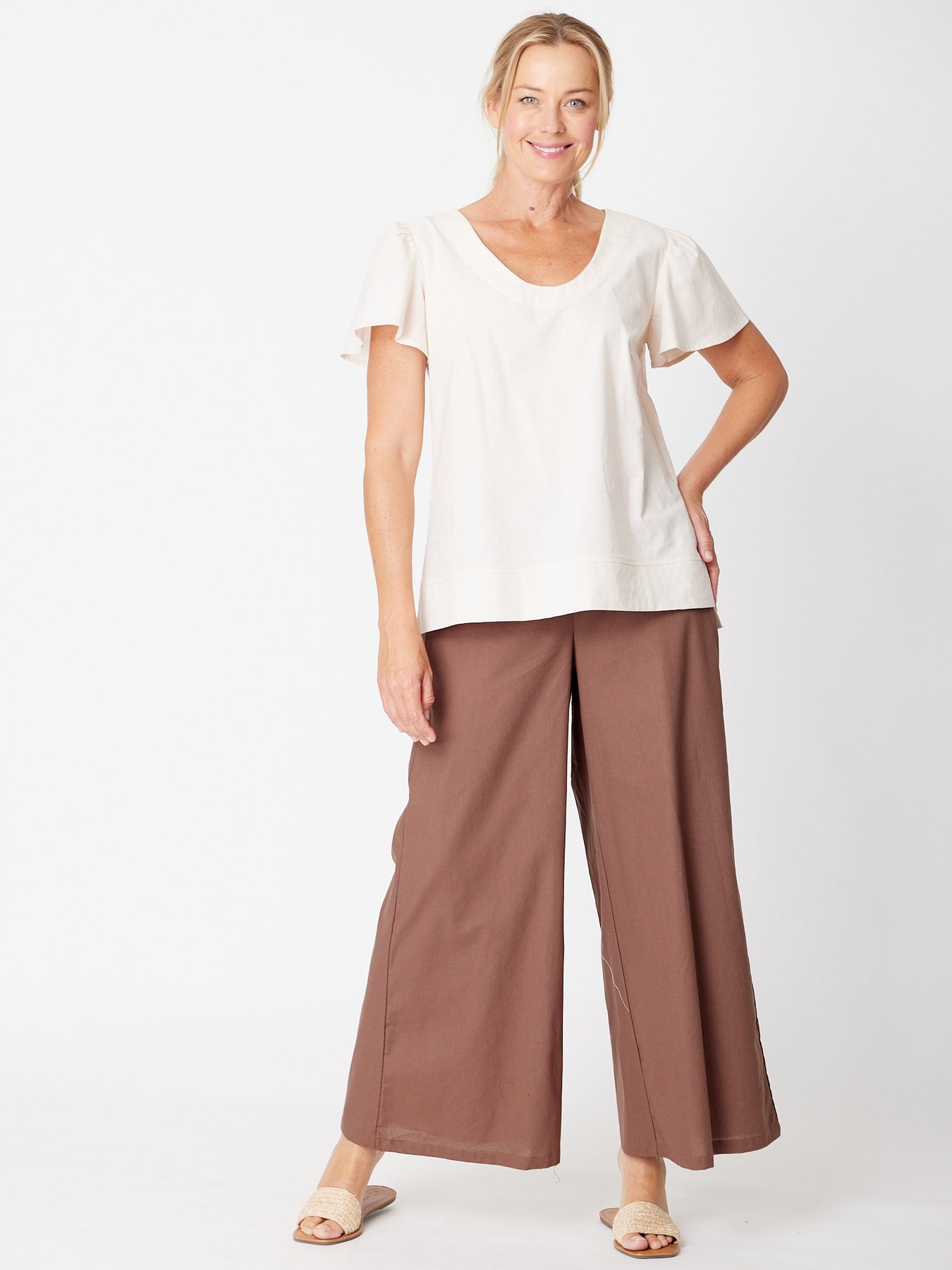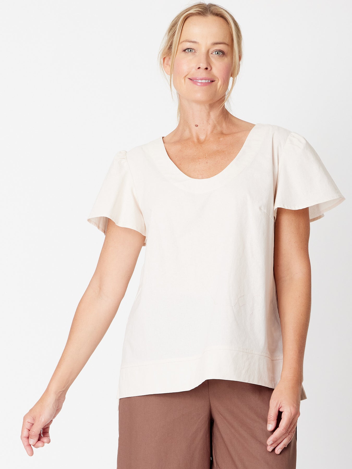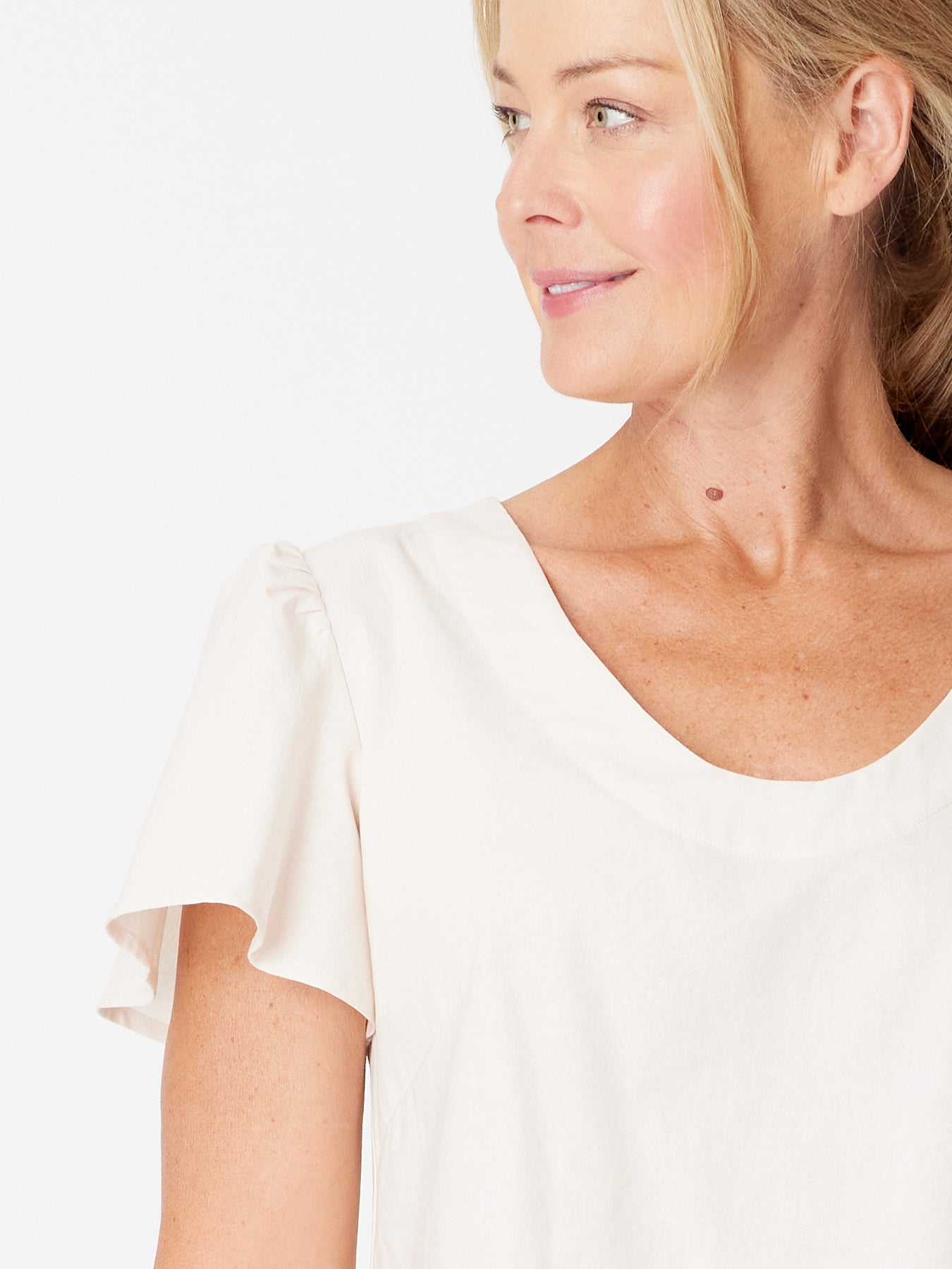 Embrace effortless style with this scoop neck cotton linen top featuring delicate fluted sleeves and a flattering swing body. Its relaxed fit ensures comfort throughout the day, while the breathable non-stretch fabric adds natural texture and durability. Perfect for both casual outings and refined looks, this top combines timeless design with modern ease.