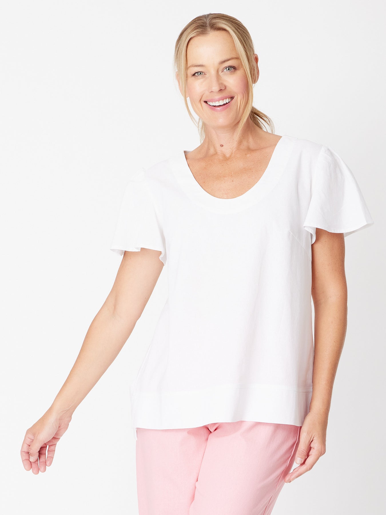 Embrace effortless style with this scoop neck cotton linen top featuring delicate fluted sleeves and a flattering swing body. Its relaxed fit ensures comfort throughout the day, while the breathable non-stretch fabric adds natural texture and durability. Perfect for both casual outings and refined looks, this top combines timeless design with modern ease.
