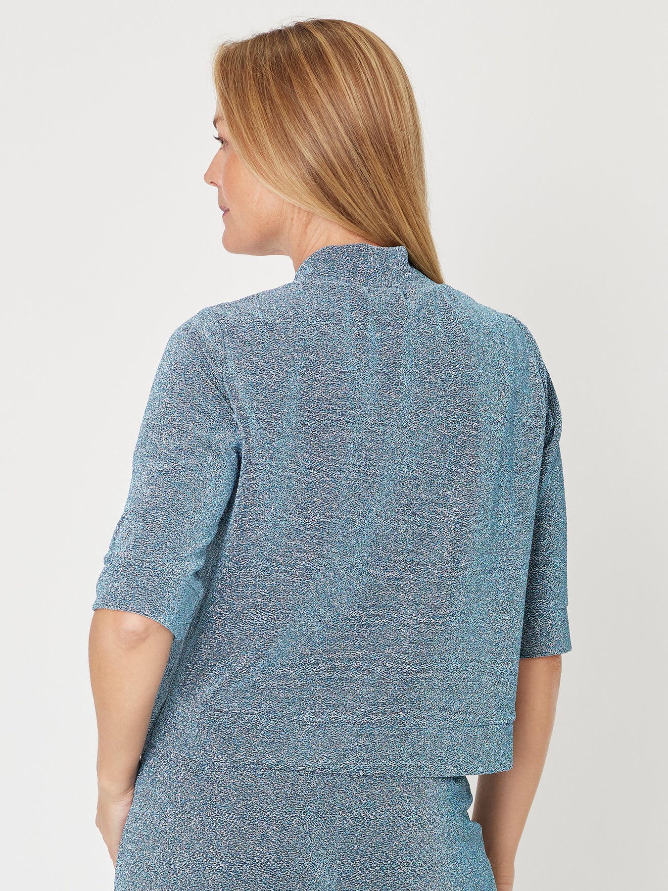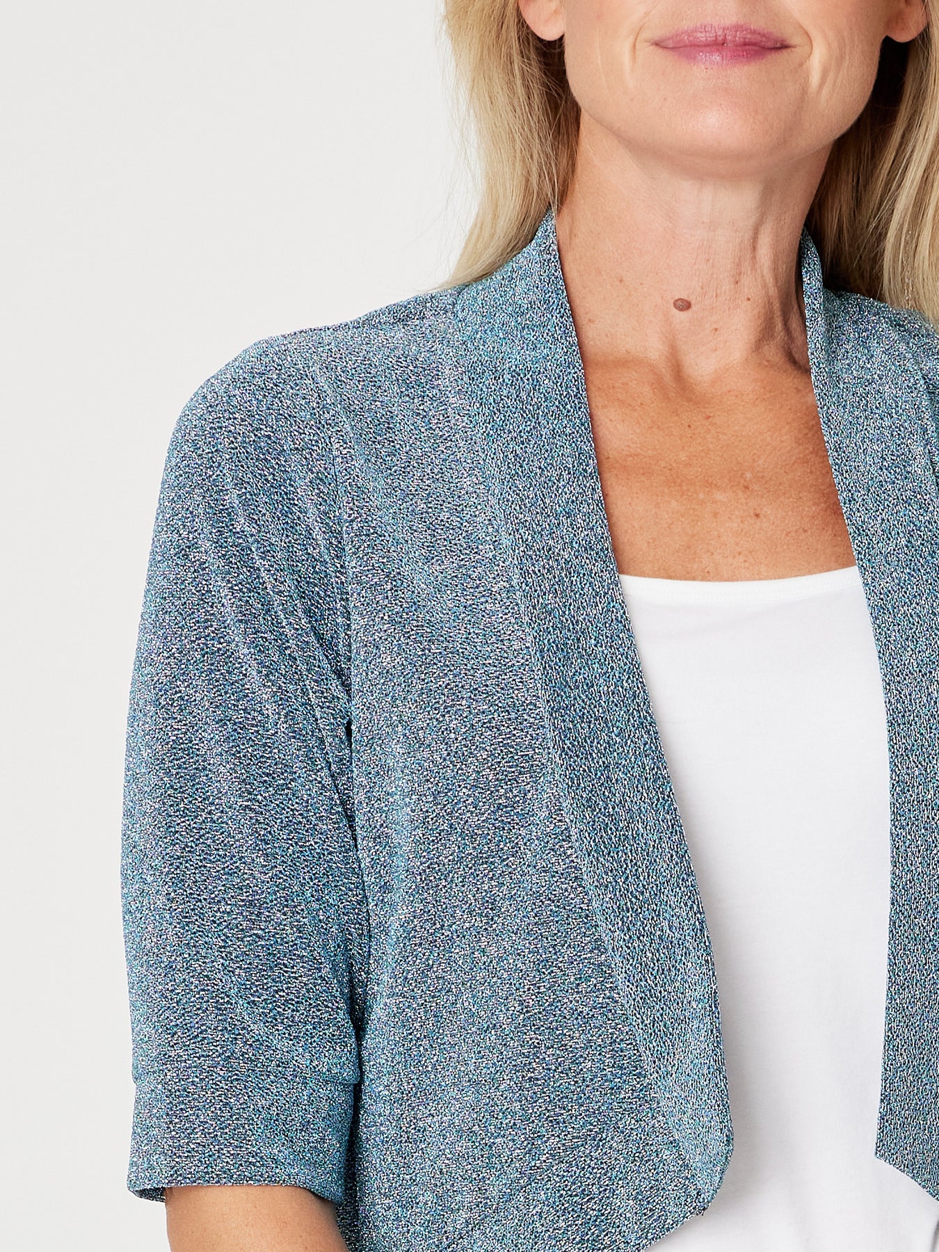 Elevate your look with the Lurex Lux Bolero in Turq, the perfect little jacket for any occasion. Crafted from stretch lurex, it offers a flattering fit and shimmering finish that pairs beautifully with matching lurex pants, tops, or skirts. Ideal as a stylish cover-up, this versatile piece adds a touch of glamour while providing comfort and ease of movement. Make it your go-to layering essential for effortless elegance.