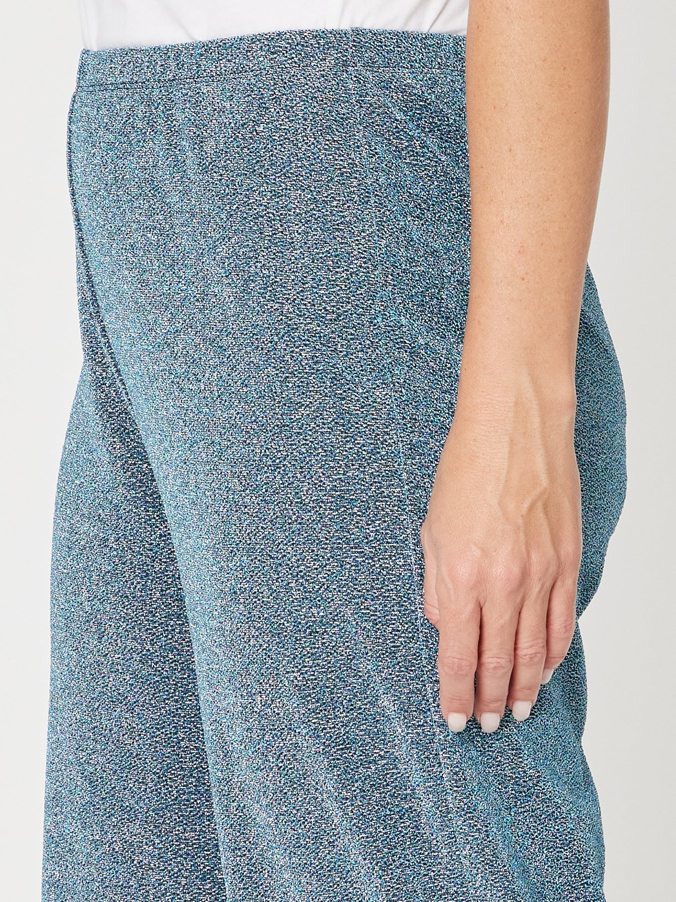 Elevate your wardrobe with the Lurex Lux Pant. These stretch lurex textured wide-leg pants offer both comfort and a striking shimmer that catches the light beautifully. Designed for effortless style, they pull on easily, making them perfect for day-to-night wear. Wear them with the matching top, skirt, and jacket available on our site for a coordinated, high-fashion ensemble. Alternatively, dress down with a simple T-shirt and sneakers for a relaxed yet on-trend look that stands out. Perfect for those who want to make a statement without sacrificing comfort.
