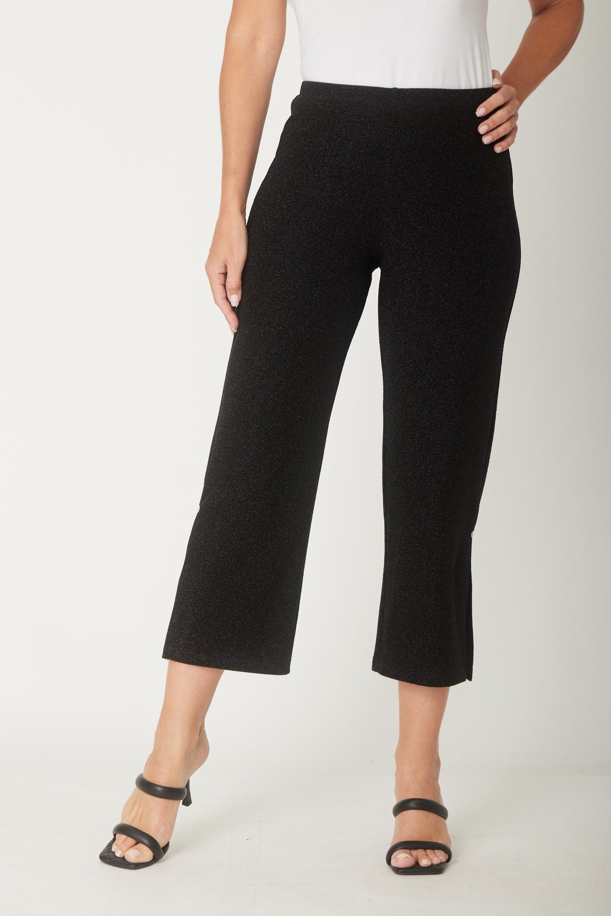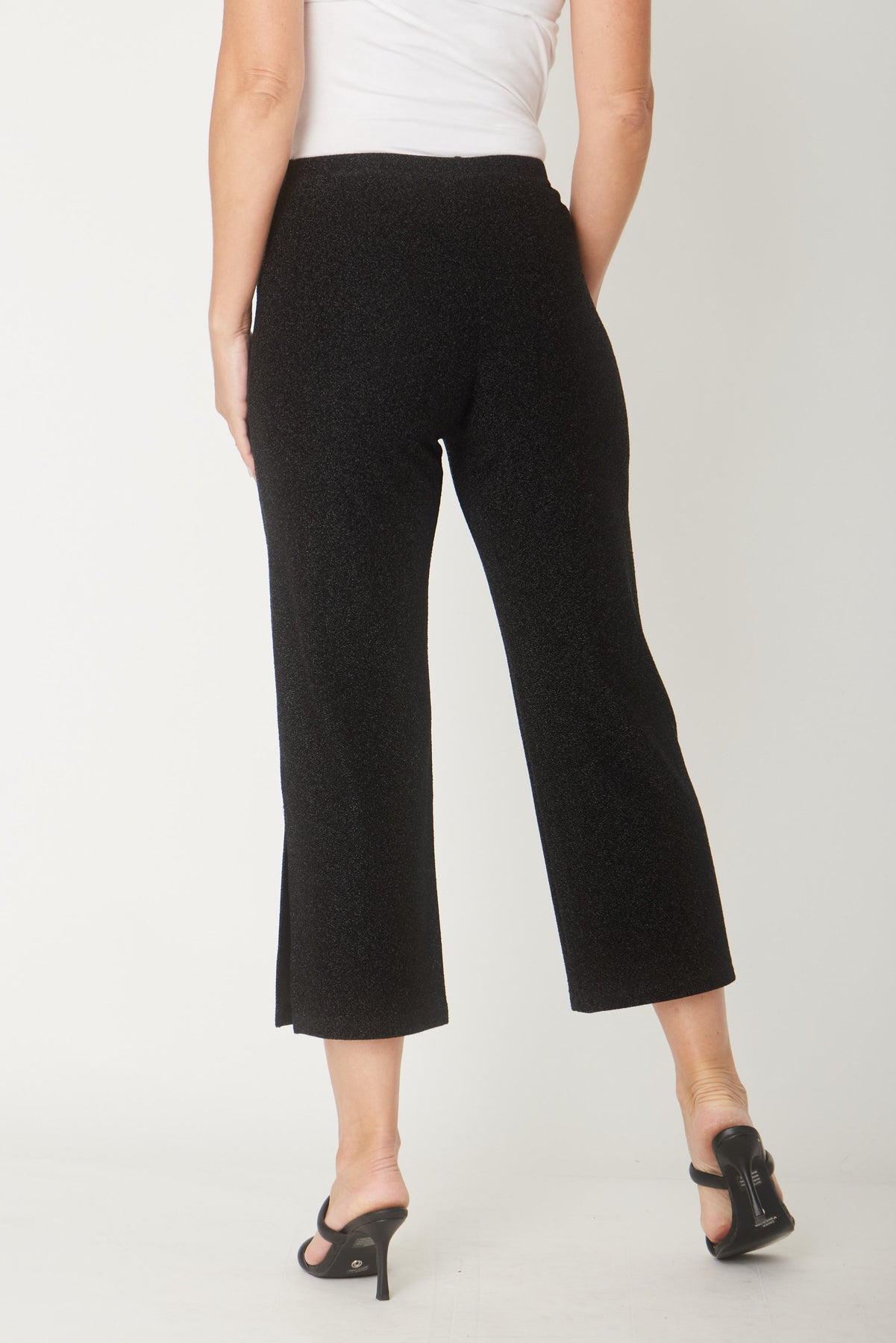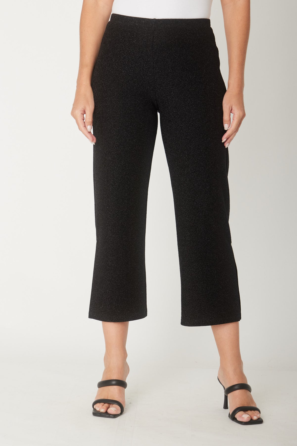 These Lurex Petties Pants offer a 7/8 length with a comfortable elastic waist, combining stretch fabric and subtle shimmer for effortless style. Perfect for dressing up or down, they create a chic look for any occasion. Pair them with the matching lurex Tarin top or jacket to complete a standout ensemble that radiates confidence and glamour.