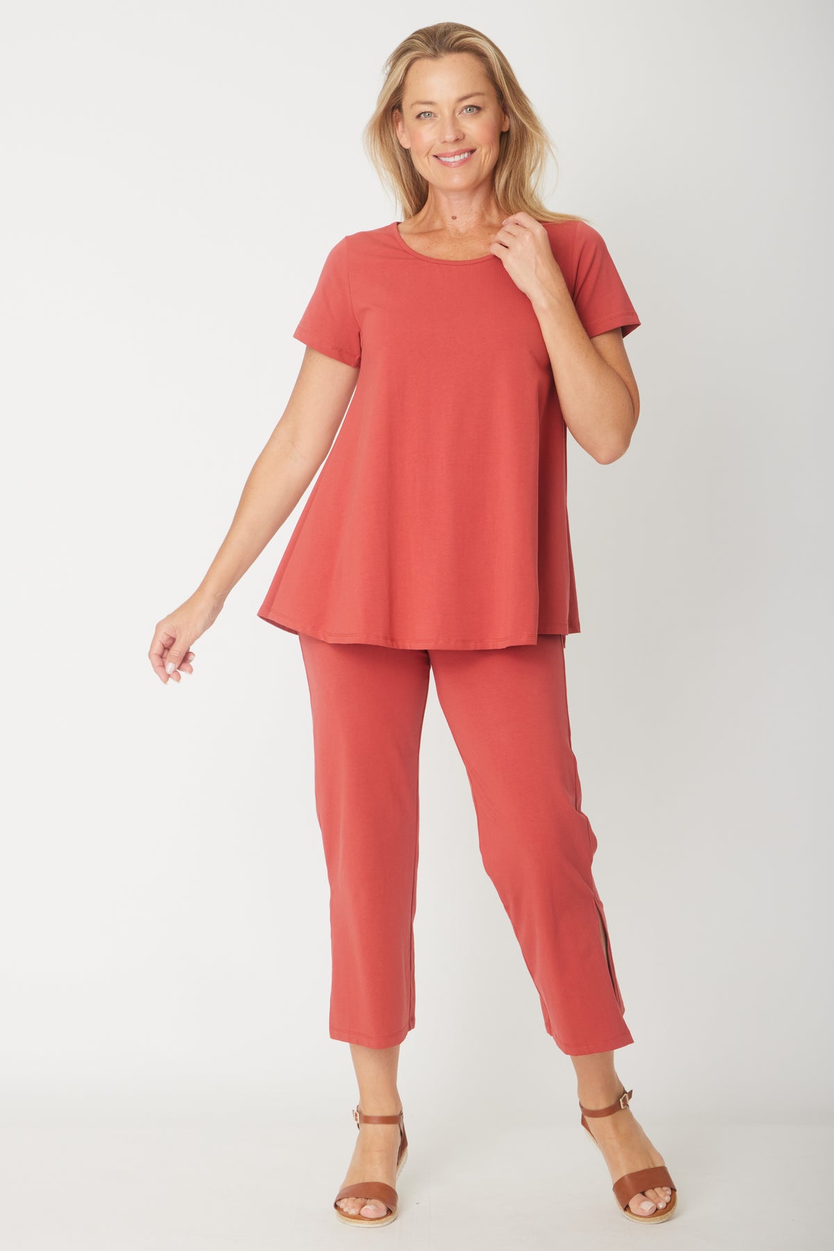 These Montana Pants offers a perfect blend of style and comfort with their 7/8 length and pull-on elastic waist. Crafted from a stretch fabric, they provide ease of movement while maintaining a polished look. Their versatile length makes them ideal for dressing up or down, and they are easy to care for, making them a practical addition to your wardrobe.