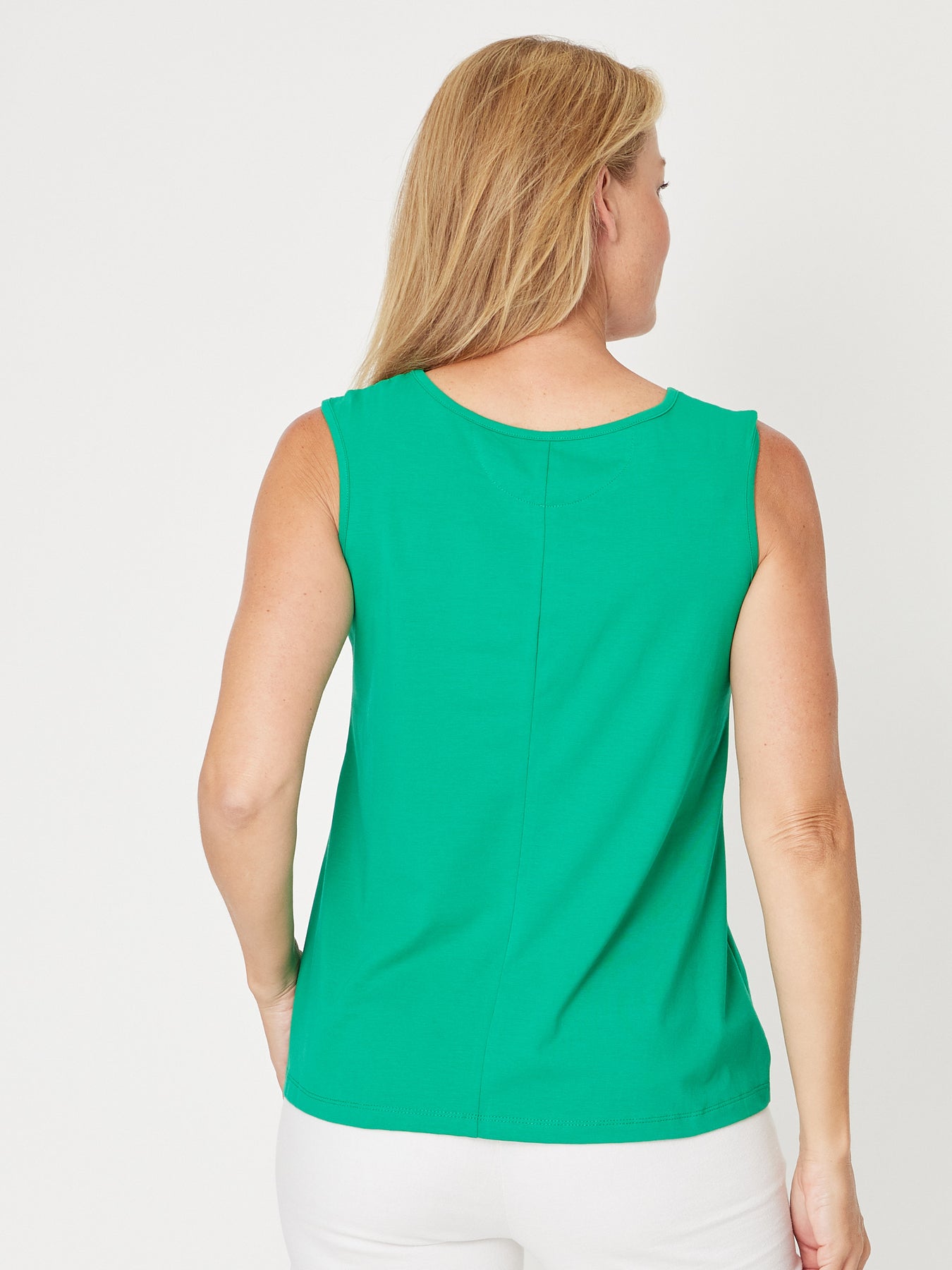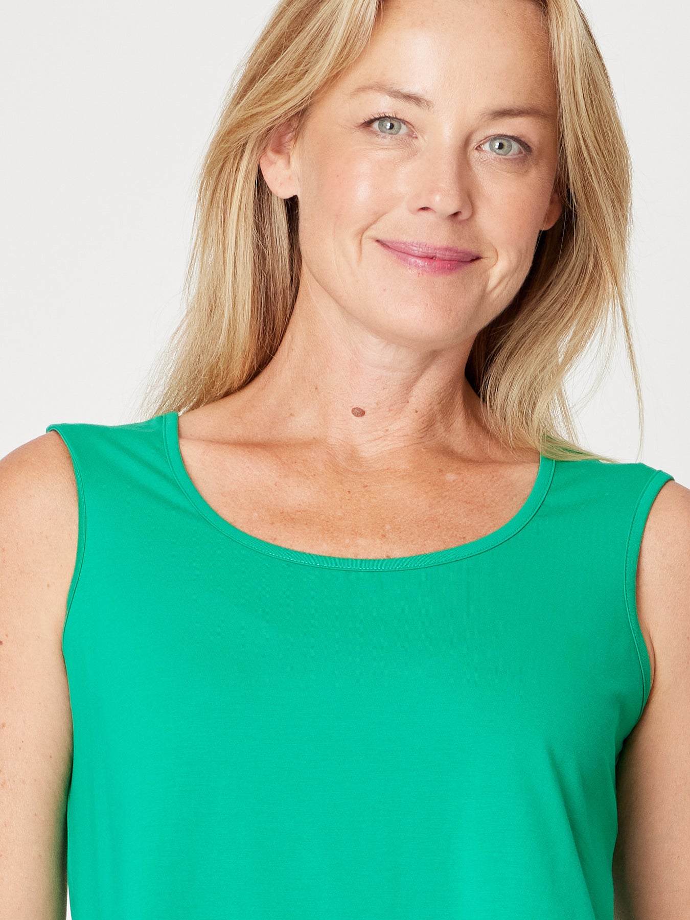 The Margie Swing Tank offers a flattering sleeveless design crafted from soft cotton jersey. Its gentle swing at the hips ensures comfort and movement, while the bra-friendly fit provides effortless support. Perfect for layering or wearing alone, this top combines style and practicality for your everyday wardrobe. Match up with the matching Margie 3/4 pants.