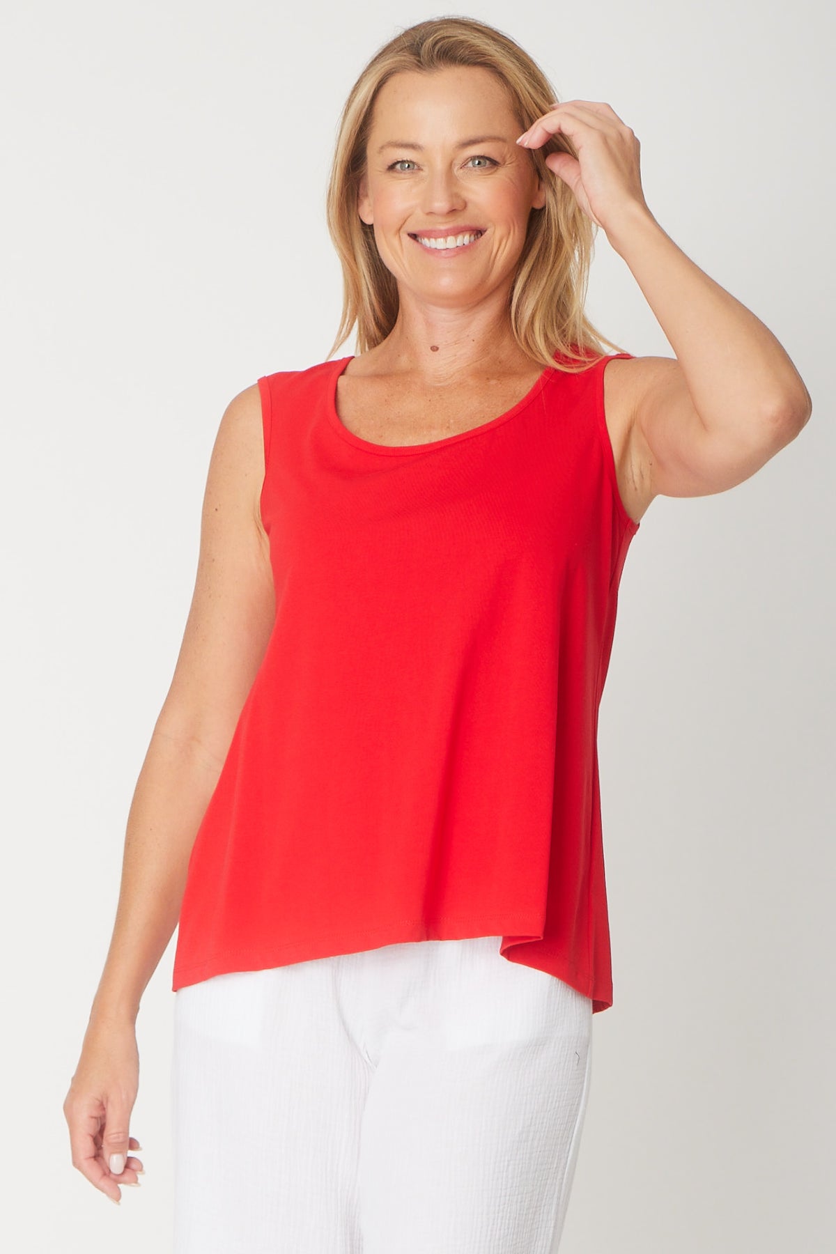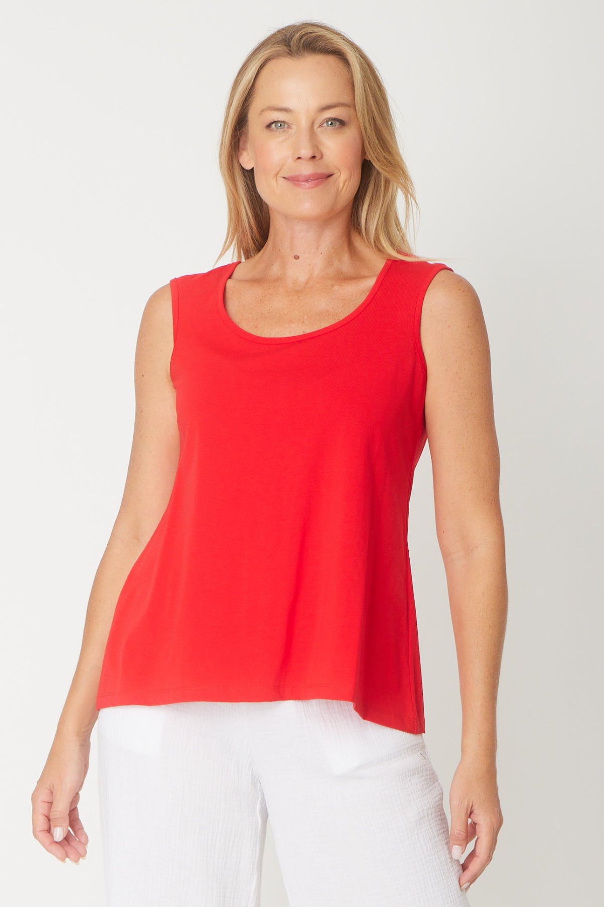 The Margie Swing Tank offers a flattering sleeveless design crafted from soft cotton jersey. Its gentle swing at the hips ensures comfort and movement, while the bra-friendly fit provides effortless support. Perfect for layering or wearing alone, this top combines style and practicality for your everyday wardrobe. Match up with the matching Margie 3/4 pants.