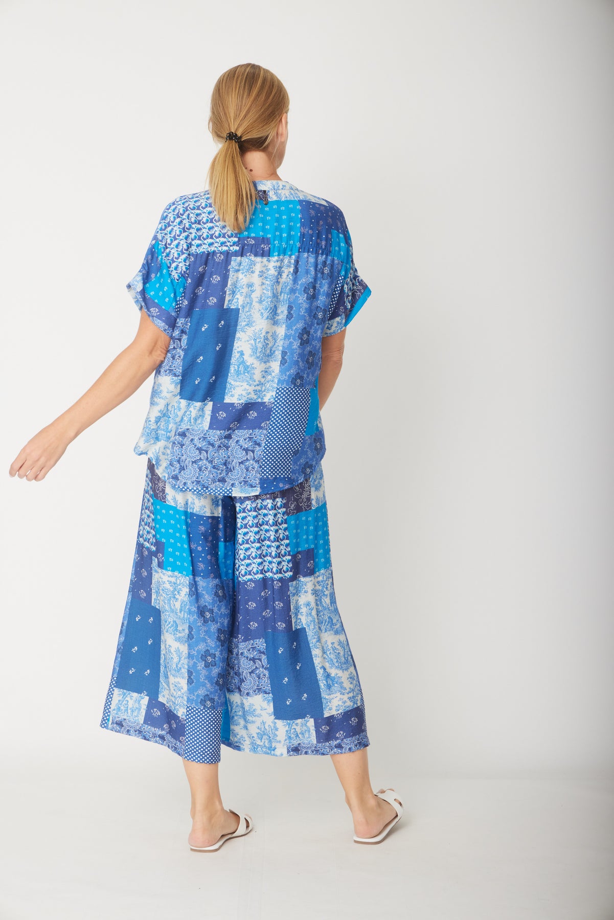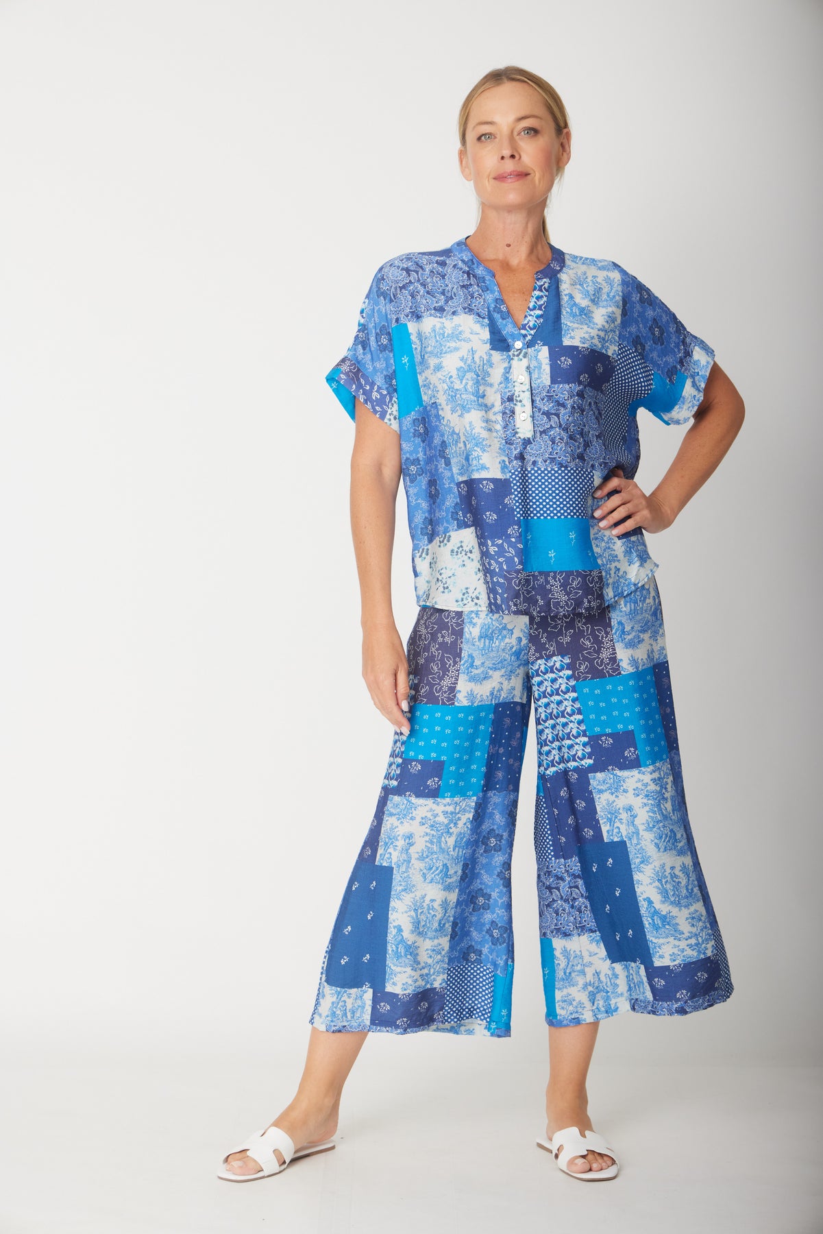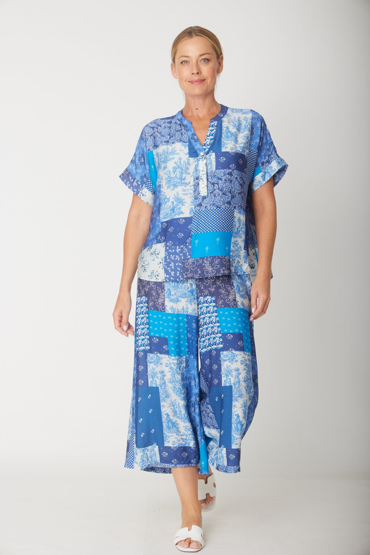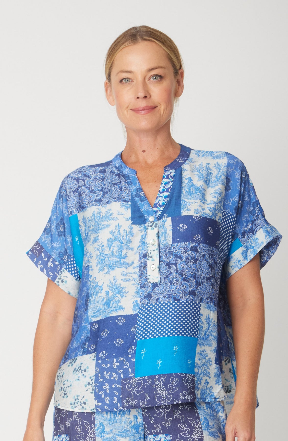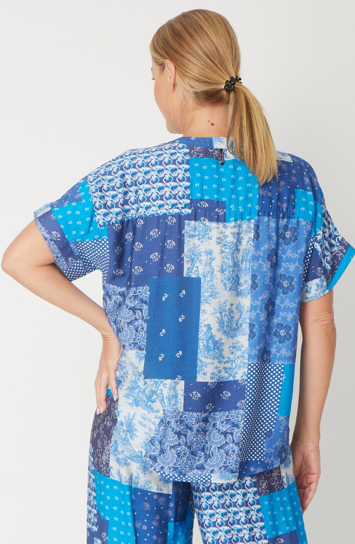 This short sleeve Nehru top features a striking royal white patchwork print, blending traditional style with contemporary coolness. Its unique design offers effortless elegance and comfort, making it the perfect statement piece for any casual or smart occasion. Stay stylish and fresh with this eye-catching top.