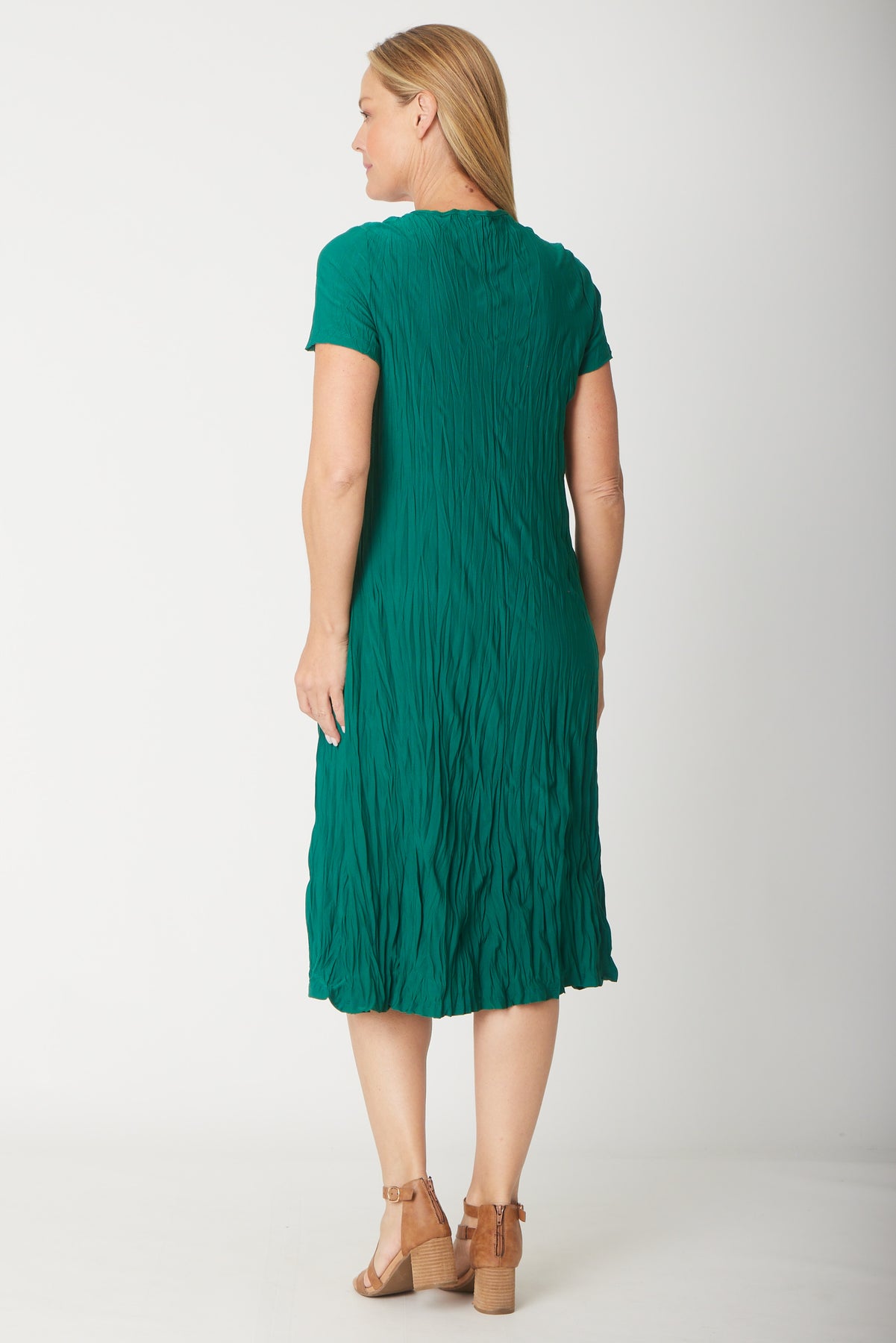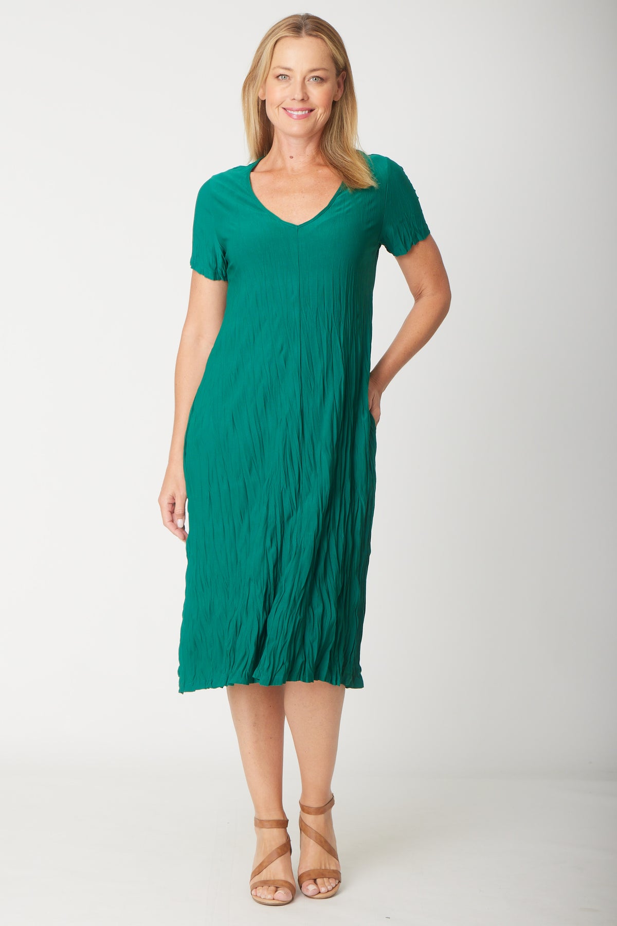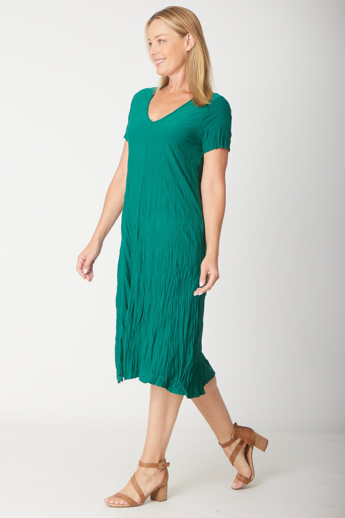 Featuring a short sleeve, a v-neckline that's not too deep, and an easy fit to just below the knee, it's endlessly flattering and gives coverage where you need it. The fabrication is an easy-care stretch mix with no need to iron!