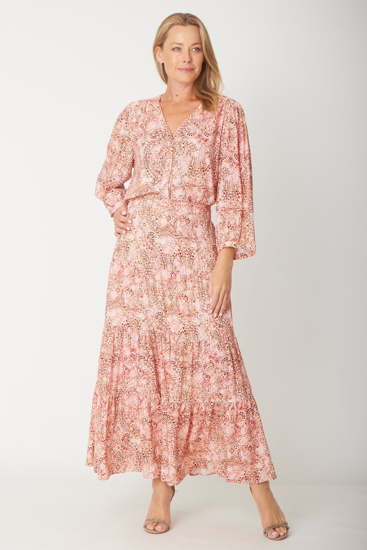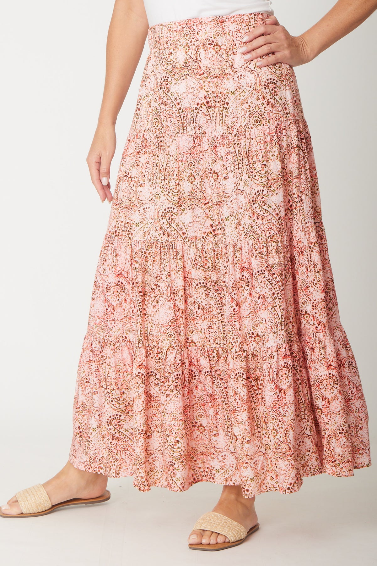 Experience effortless elegance with the Oakley Skirt. This feminine tiered maxi skirt features a comfortable pull-on elastic waist and is crafted from soft, breathable rayon that keeps you cool all day. Whether paired with heels, slides, or sneakers, it’s the perfect versatile piece to elevate your style with ease.