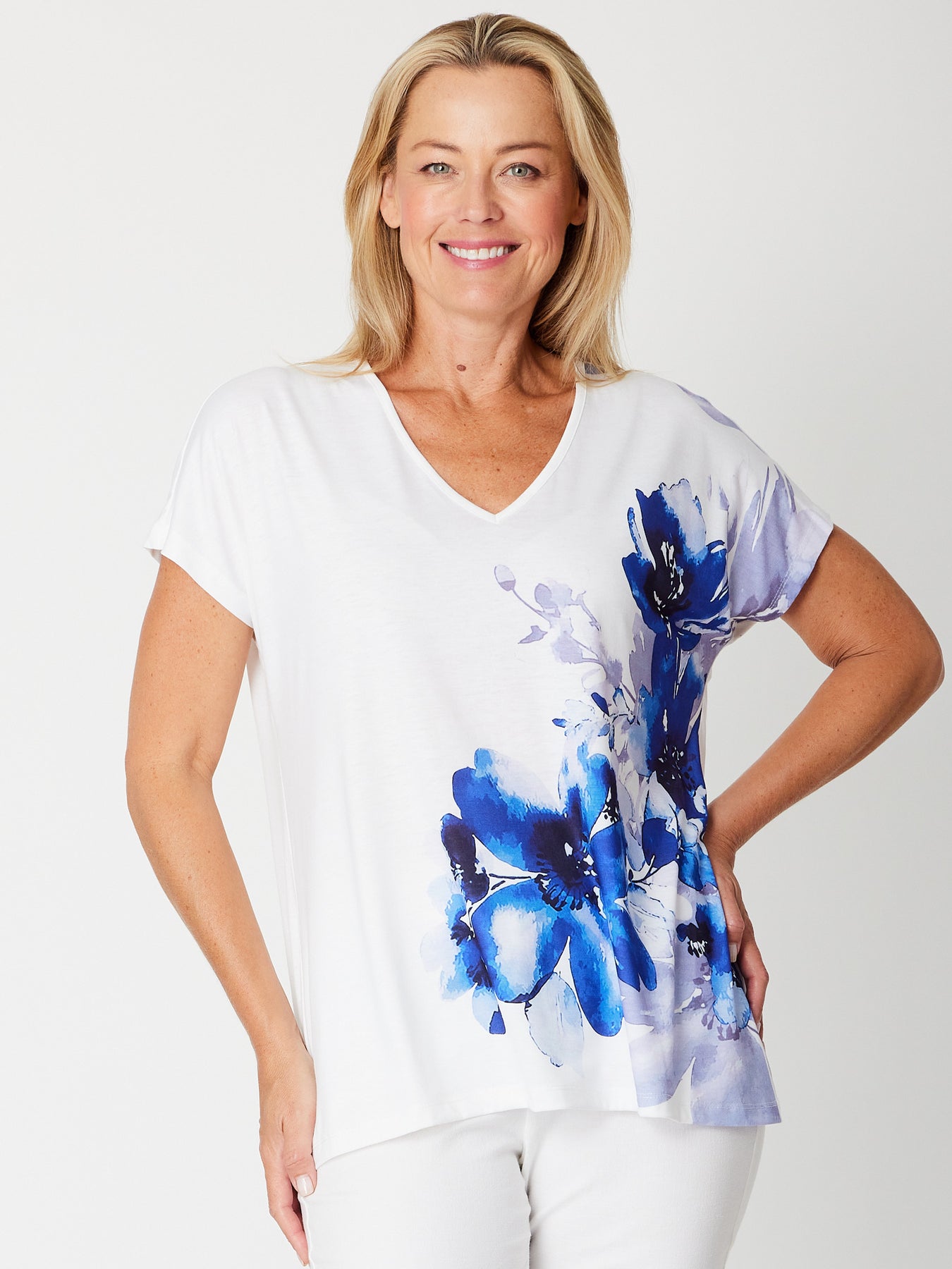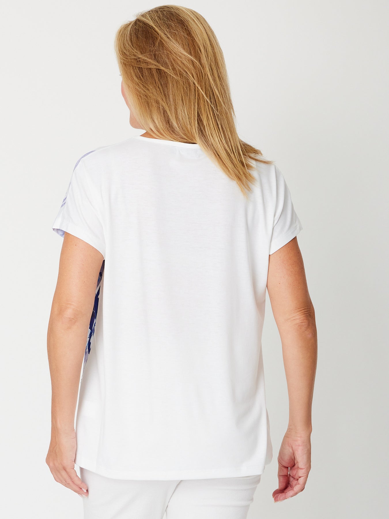 Blue Beauty Vee Neck Tee - White/Blue- 31638