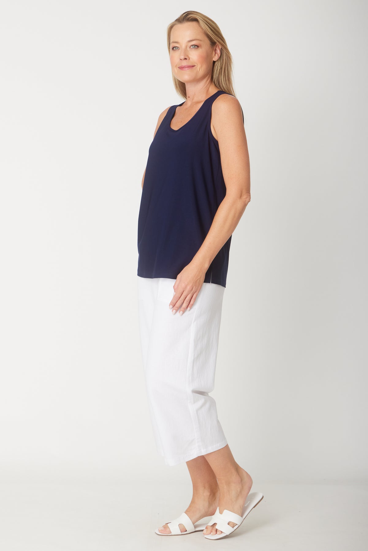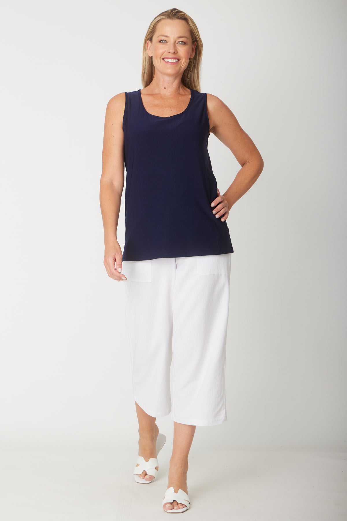 Experience ultimate comfort and support with the Long Line Tank. Crafted from a soft, stretch jersey fabric, this bra-friendly cami offers a flattering, longer silhouette that moves with you throughout the day. Its smooth, breathable material ensures all-day wearability, making it an essential layering piece or standalone top. Whether dressed up or down, the sleek design and supportive fit provide confidence and ease in every outfit. Perfect for those seeking style without compromising comfort.