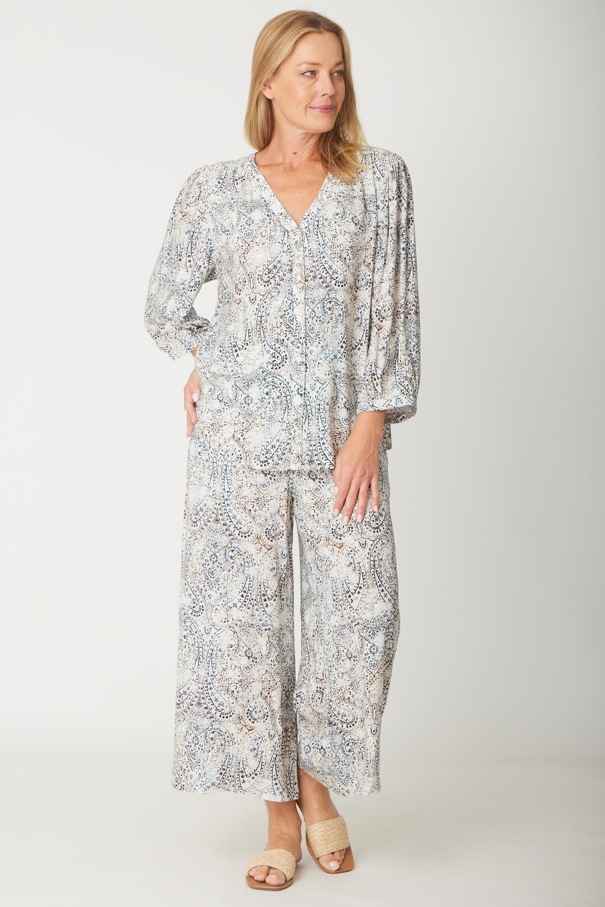 Experience effortless style with the Oakley Shirt. Crafted from lightweight rayon, this top features a flattering V-neck and button-through front for easy wear. Its relaxed balloon sleeves with a neat 3/4 bind add a touch of elegance, making it perfect for both casual and refined looks. Embrace comfort and charm in one versatile piece.