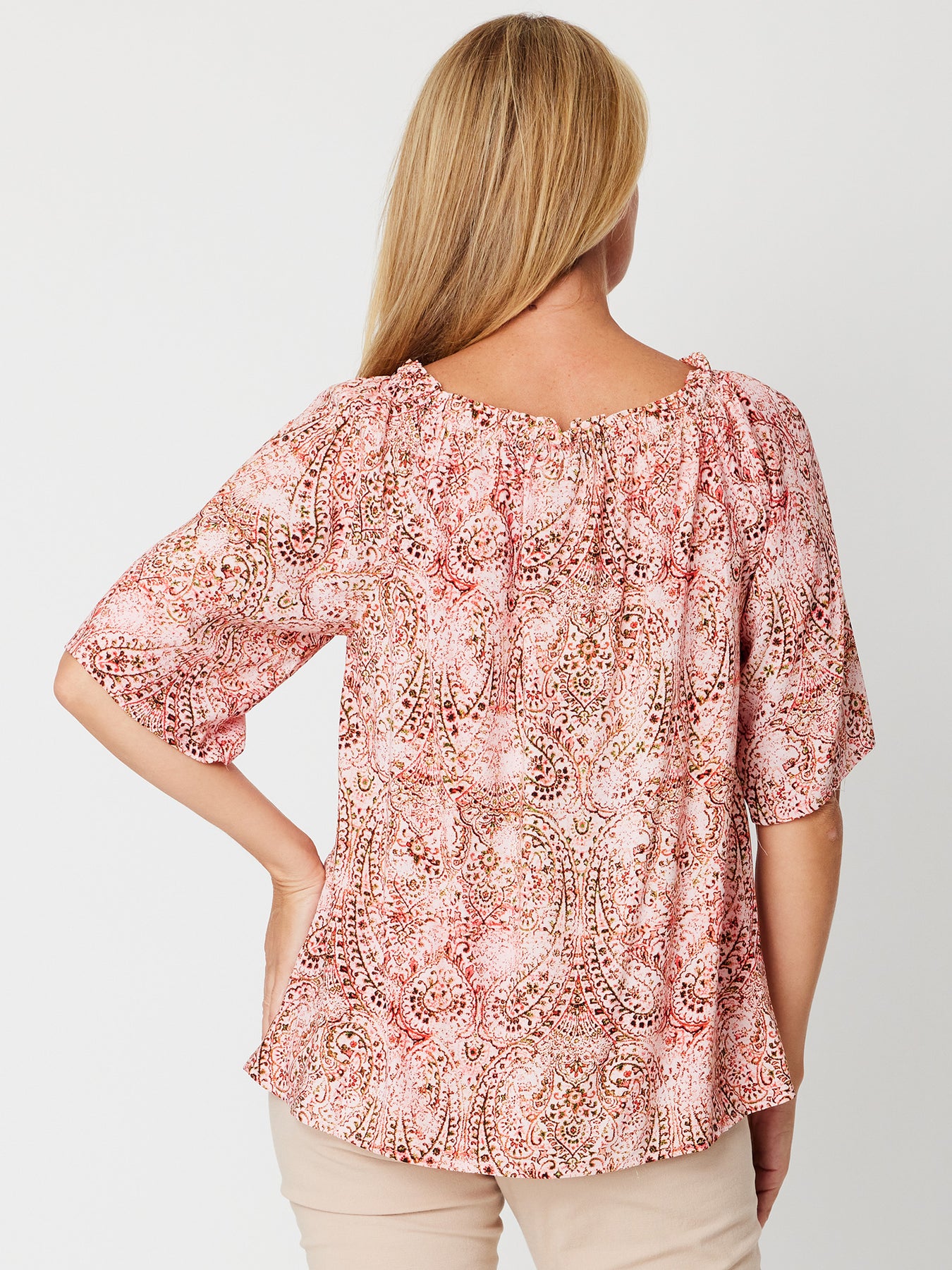 Embrace effortless style with the Oakley Top. Featuring a versatile elastic neckline, it can be worn on or off the shoulders for a charming peasant-style look. The mid-length sleeves and lightweight, floaty rayon fabric ensure comfort and breathability, perfect for warmer days. This top combines feminine appeal with easy elegance, making it an ideal addition to your casual wardrobe.