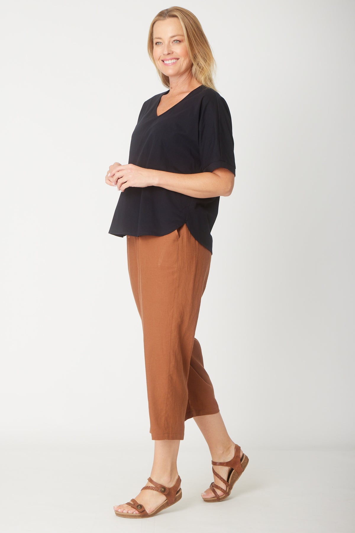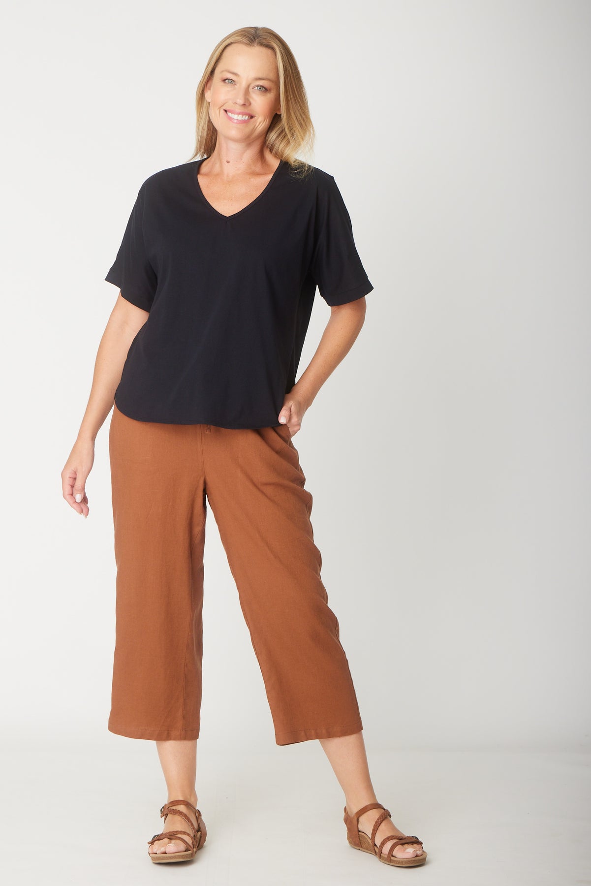 Experience effortless style and comfort with the Relaxed Summer V Tee. Featuring a flattering V-neck and elbow length sleeve , this tee offers a relaxed fit in a dense cotton jersey The modern scoop hem and subtle side splits adds a modern edge, making it perfect Tee Top of the season. We call it the summer Dream Tee. A versatile wardrobe essential, this tee blends classic design with everyday ease for your laid-back summer look.