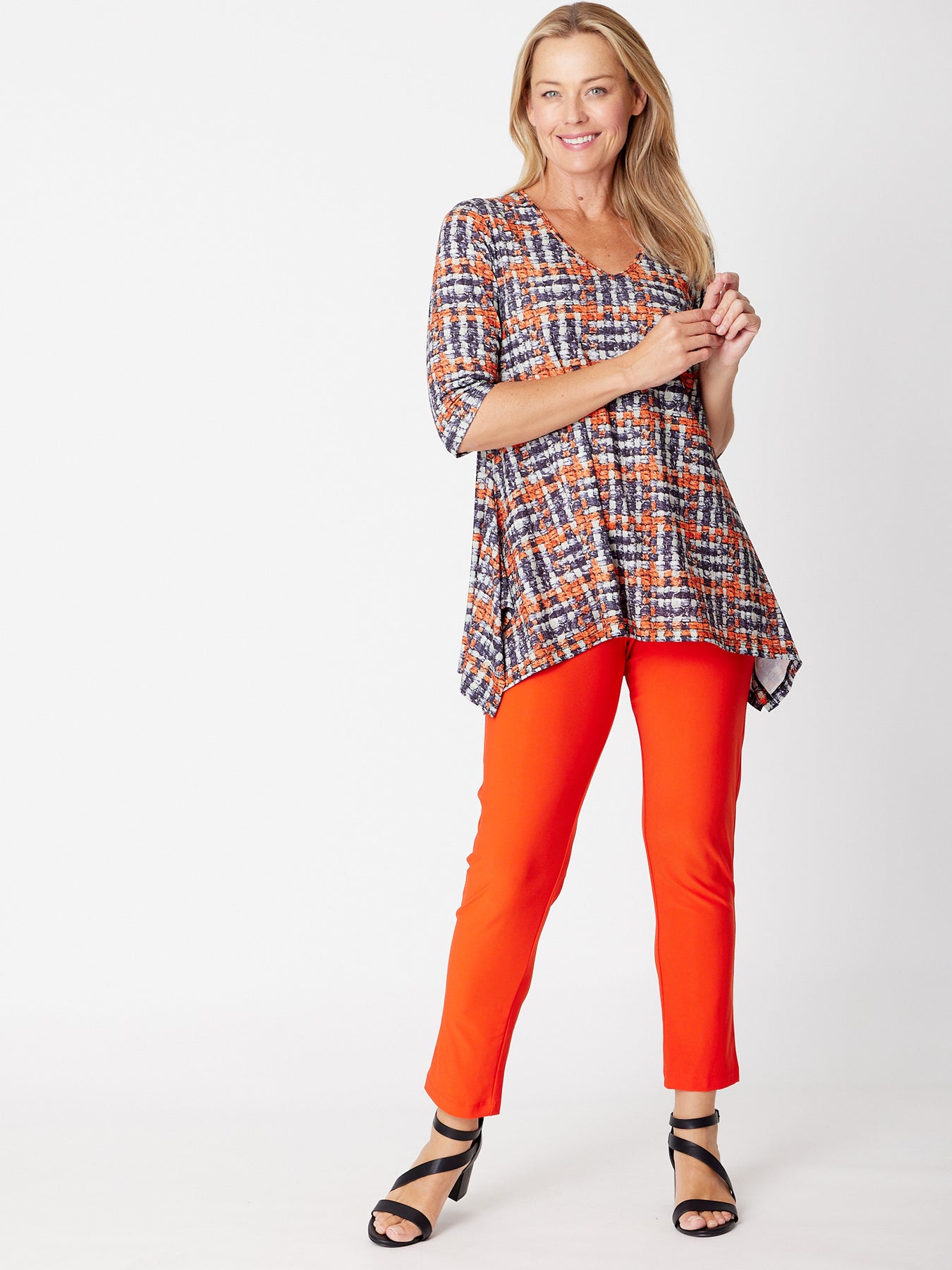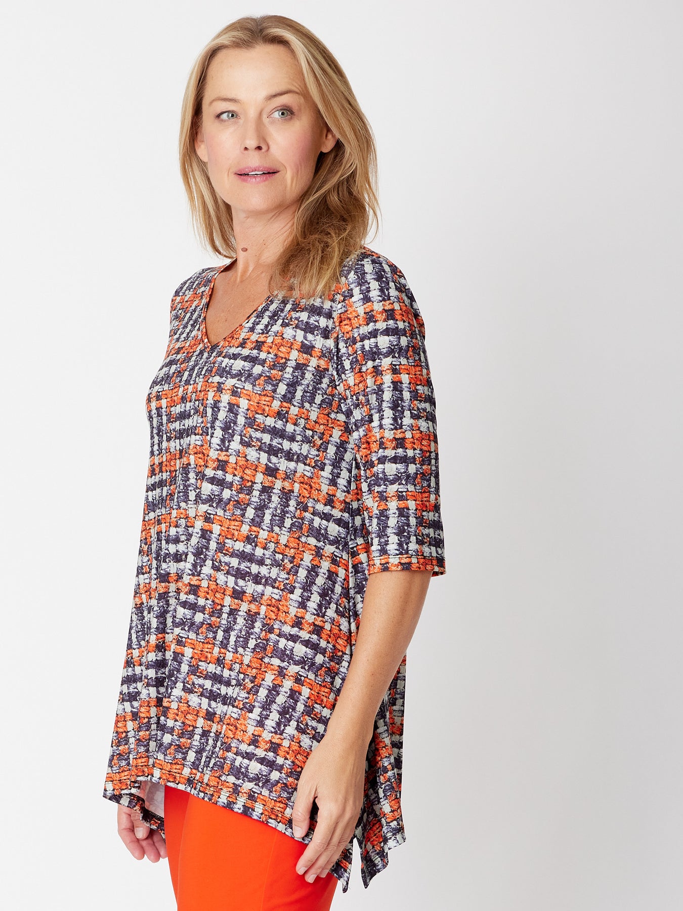 Andrea Print Tunic Top - Check - 31768