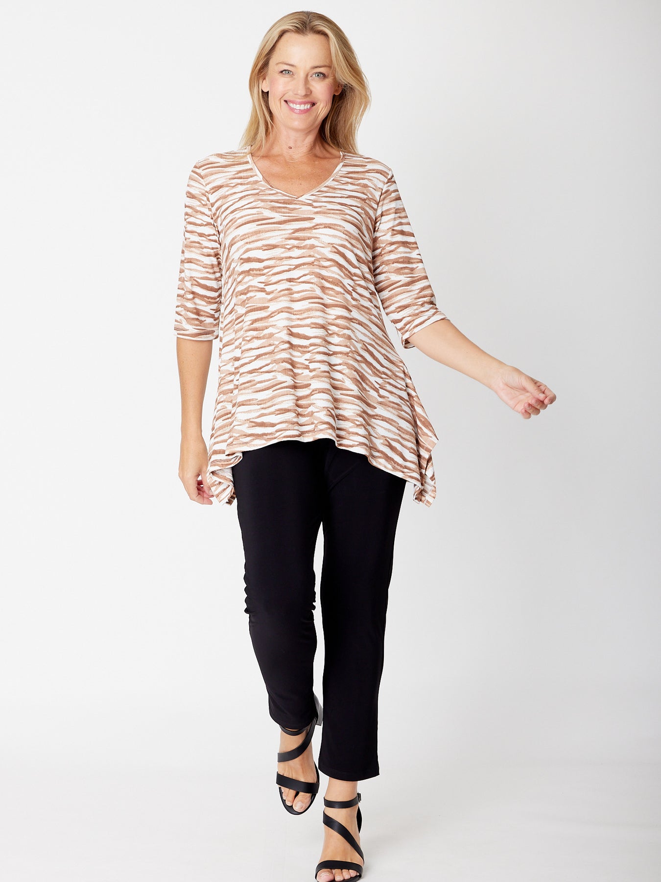 Elevate your wardrobe with our Andrea Tunic Top! Made from stretch jersey material, this top offers both comfort and style. The 3/4 sleeves and flared design create a flattering silhouette, perfect for any occasion. Upgrade your look with our versatile and fun Tunic Top!