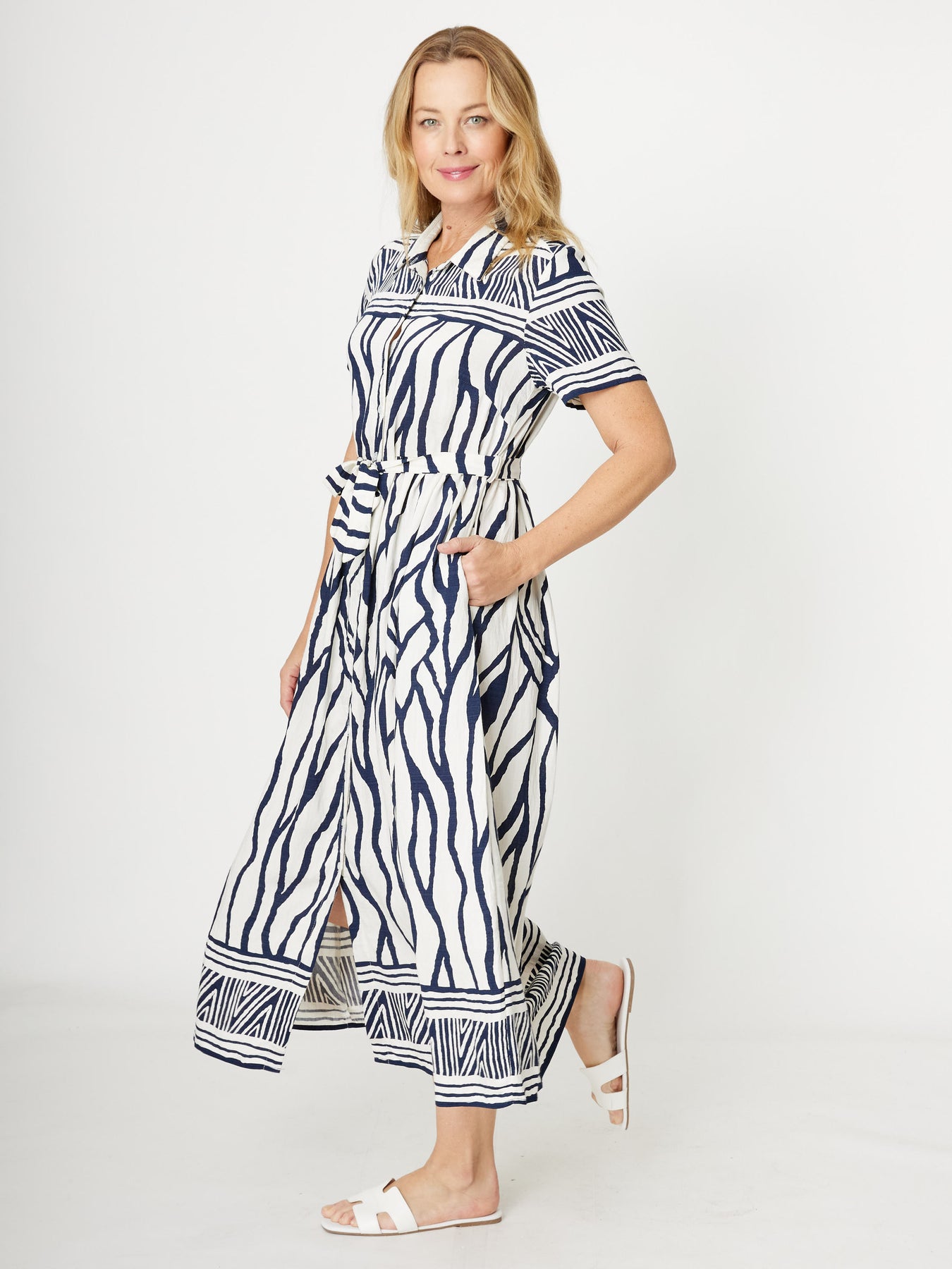 The Border Shirt Maker Dress combines timeless style with everyday practicality. This maxi-length design features classic short sleeves and a flattering belted waist that defines your silhouette. Best of all, it includes functional pockets—a feature every wardrobe needs. This versatile piece transitions effortlessly from casual outings to more polished occasions. The shirt maker construction ensures a crisp, professional finish that works beautifully for any season.