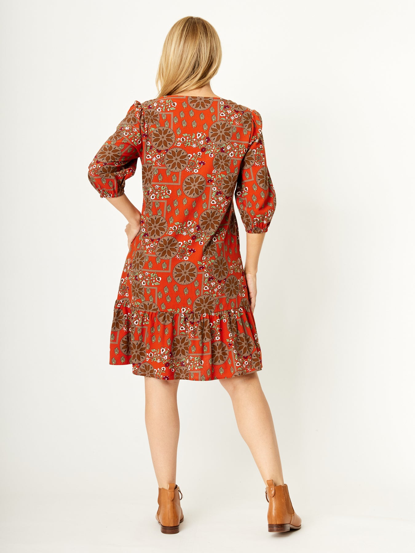 Cotton 3/4 Sleeve Tier Dress - Rust - 32194