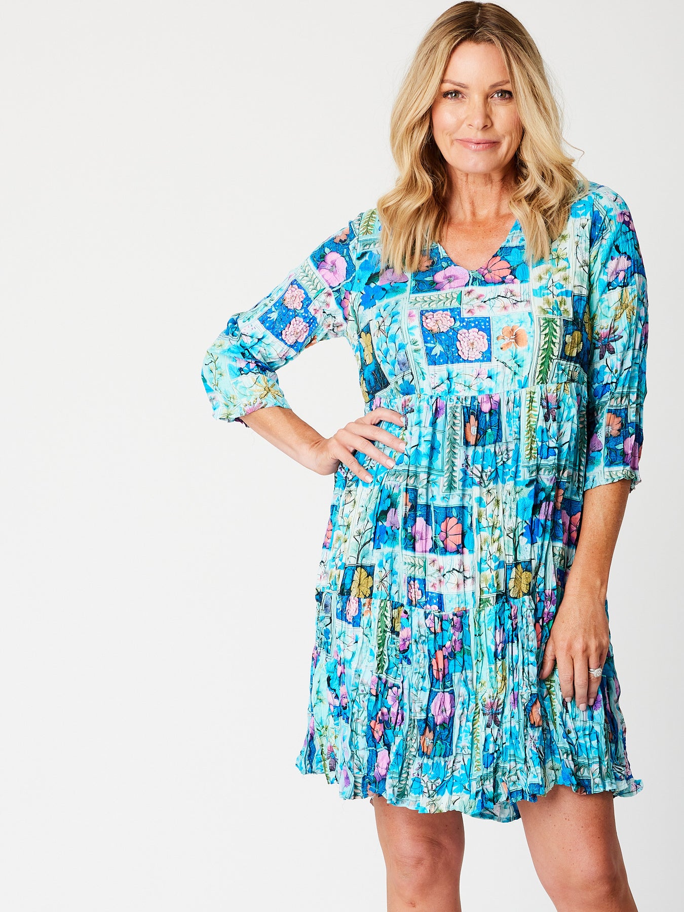 Crinkle Rayon Dress - Turq - 31718