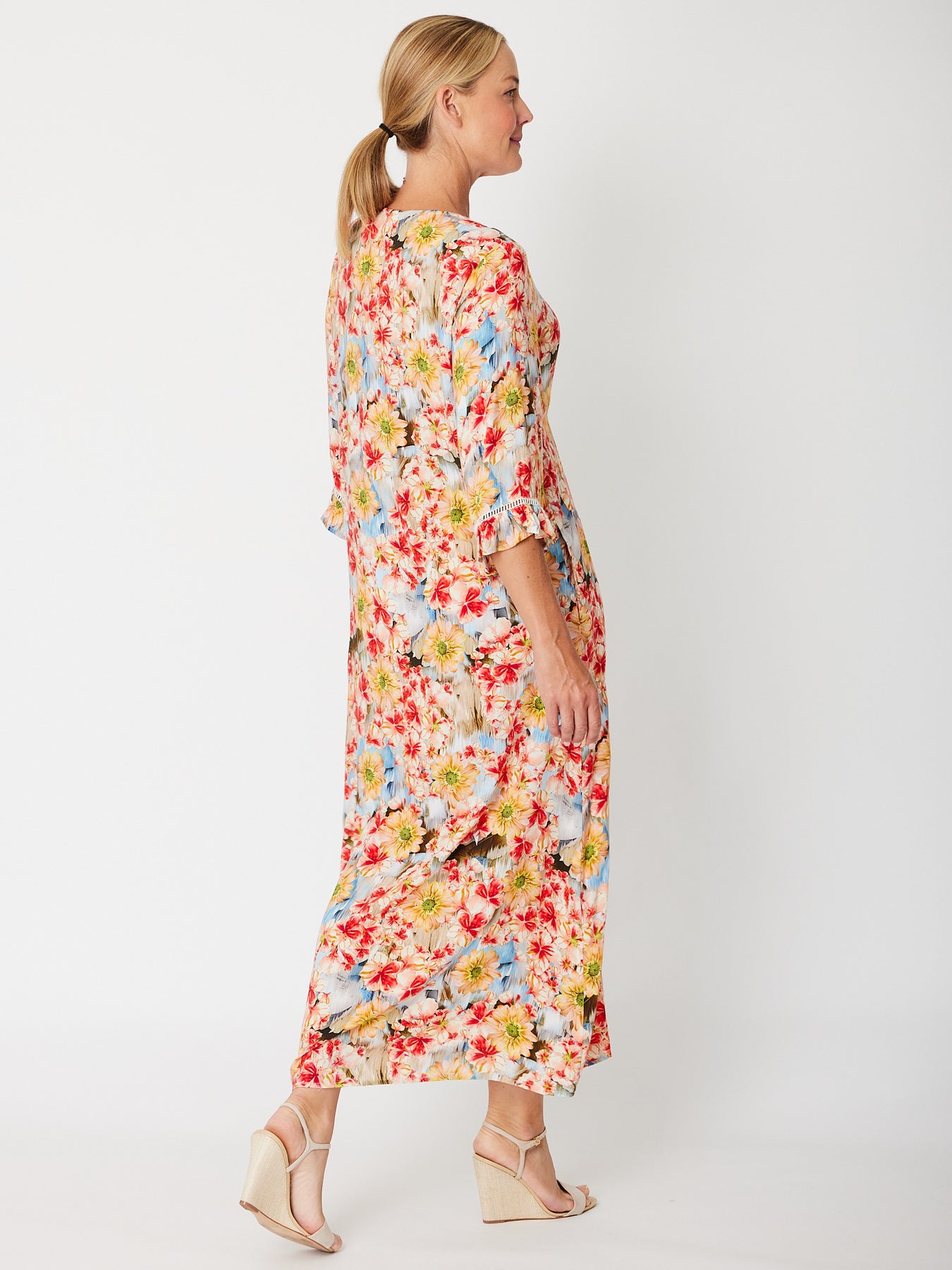 Elevate your everyday wardrobe with the Katie FLORAL V-Neck Dress, a versatile piece that effortlessly transitions from day to night. The flattering v-neckline and graceful 3/4 floaty sleeves create an elegant silhouette, while the vibrant floral print adds a touch of feminine charm. Practical side pockets keep your essentials within reach without compromising style. Perfect for casual outings, work events, or weekend gatherings, this dress combines comfort and sophistication in one stunning design.