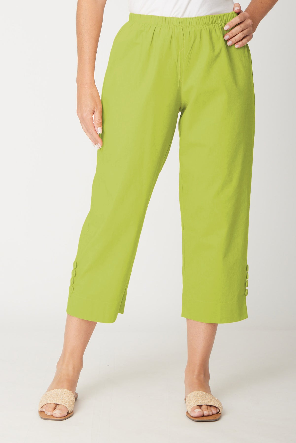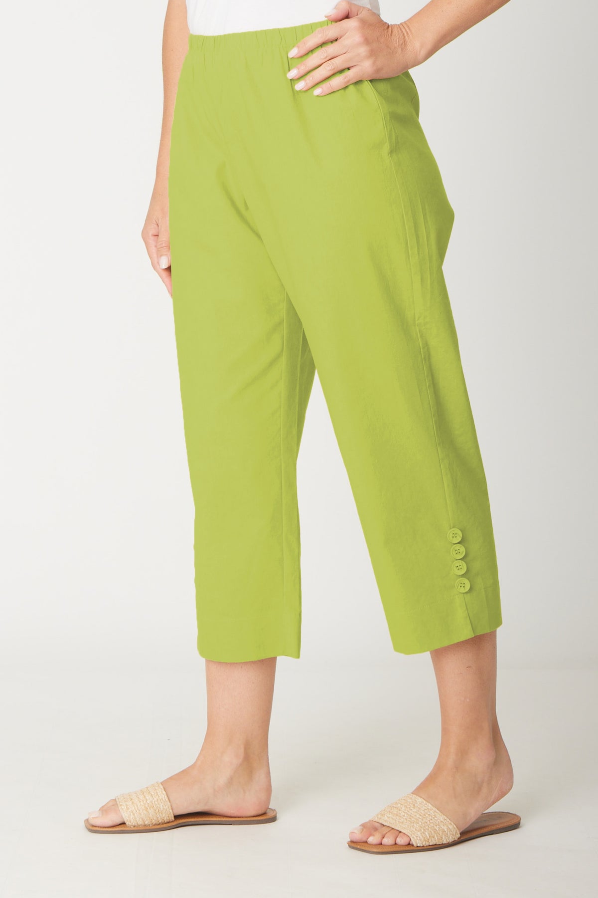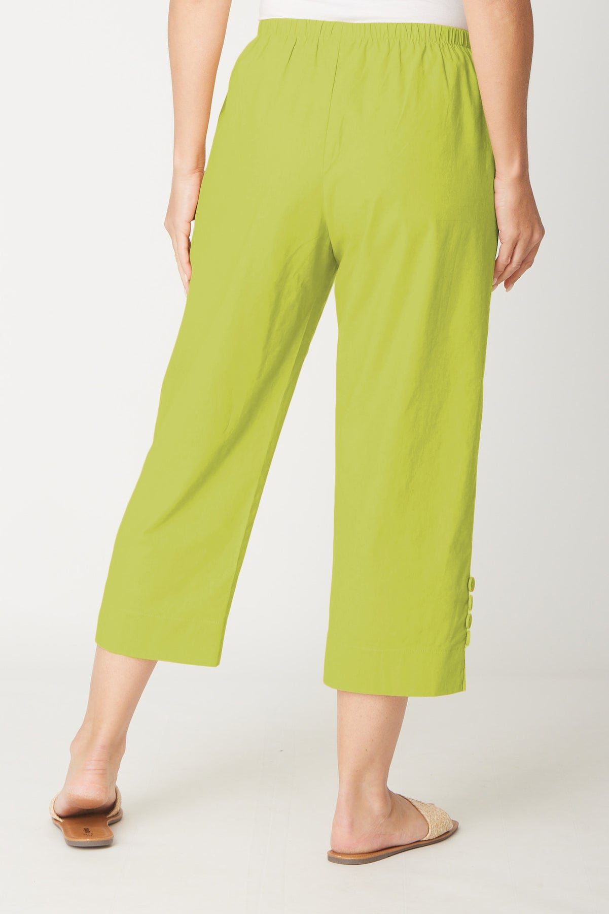 Split Leg Linen 3/4 Pant- Chartreuse - 31594
