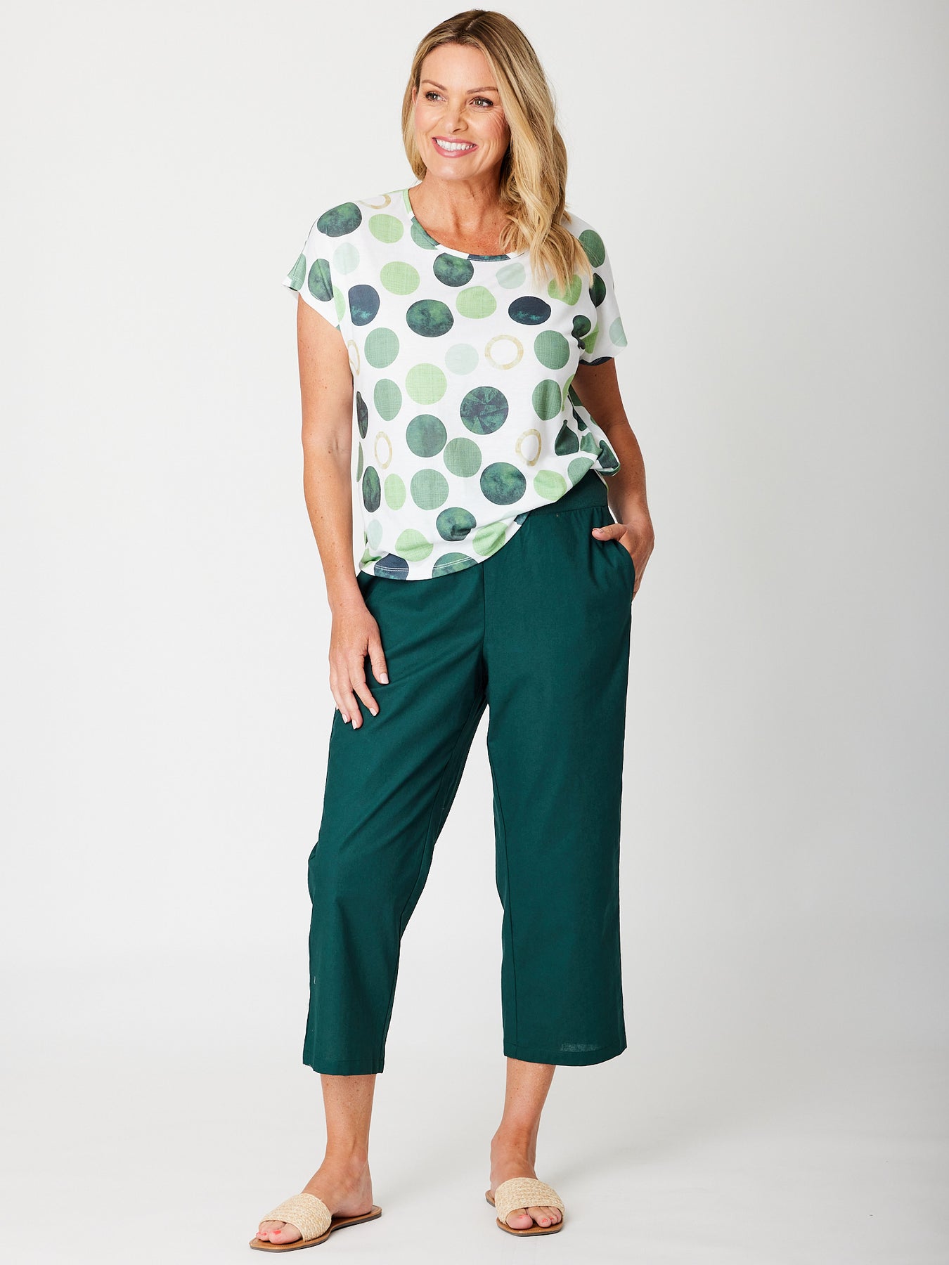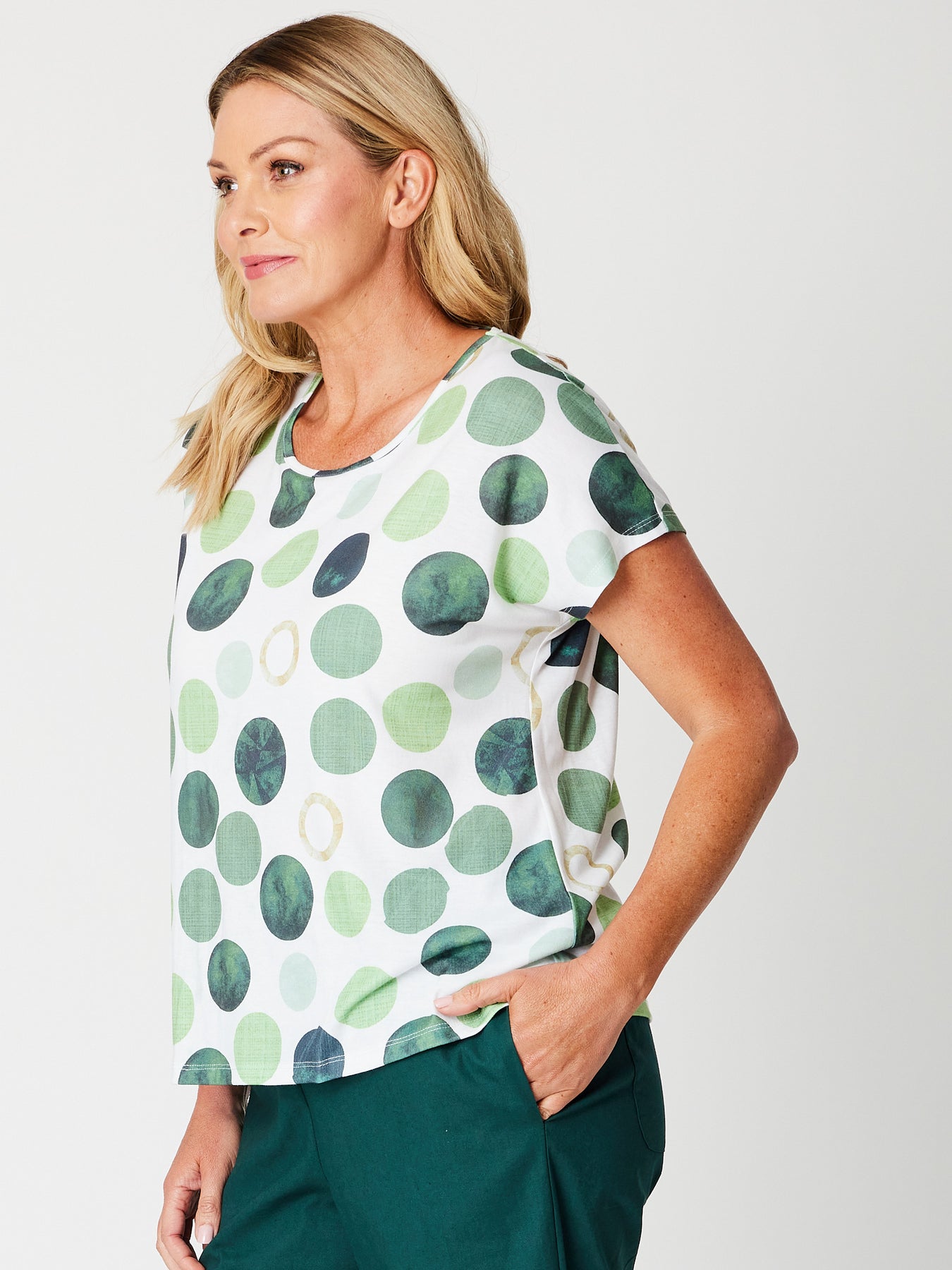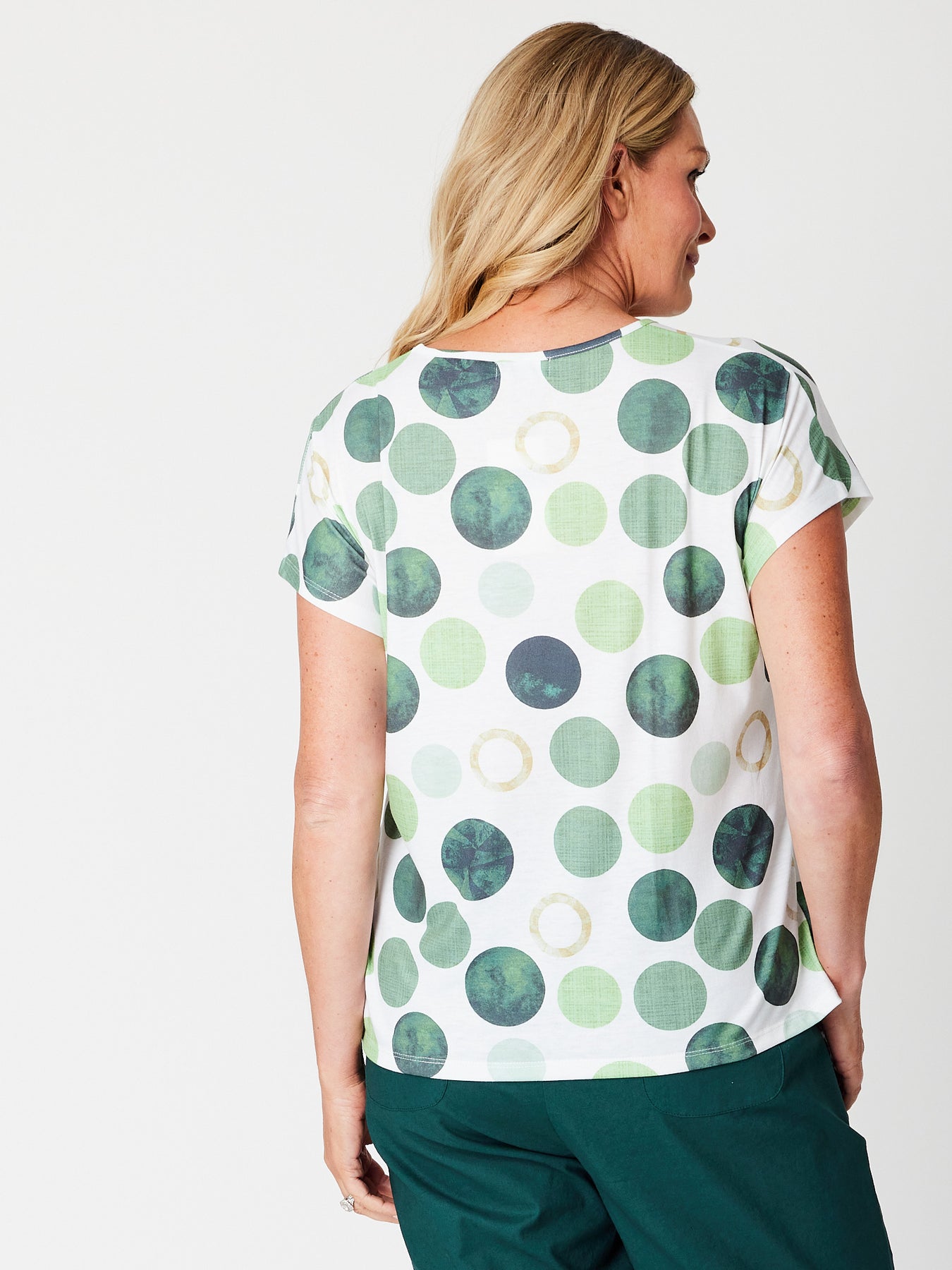 Spotty Dotty Cap Sleeve Top - White/Green - 31640
