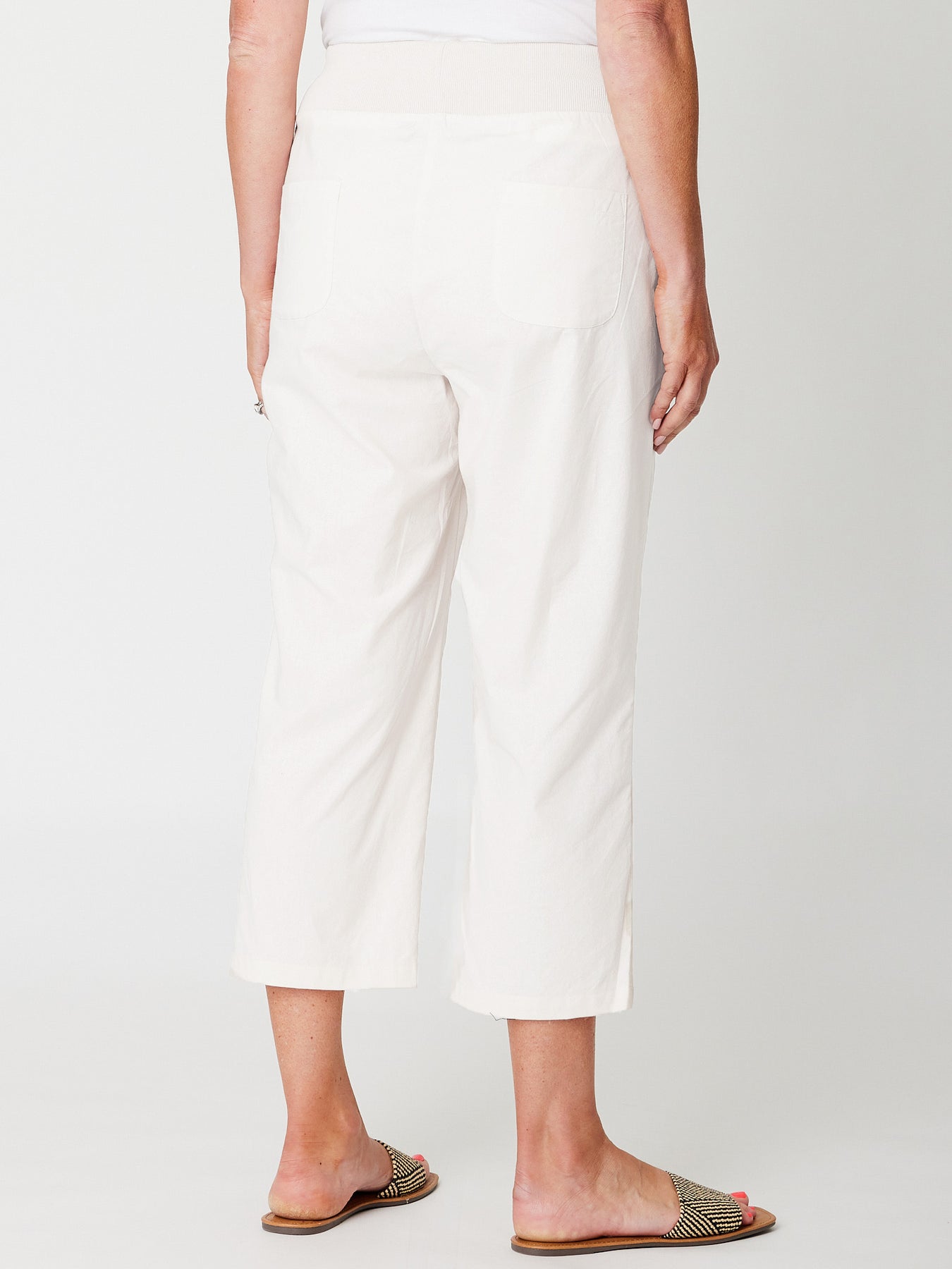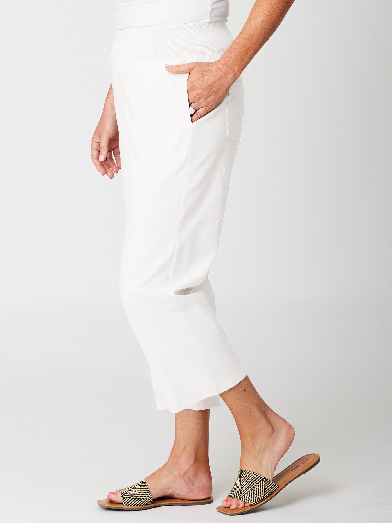Experience effortless comfort and style with these Wide Leg Crop Pants. Crafted from a breathable cotton-linen blend, they keep you cool on hot summer days. The relaxed fit combined with a soft stretch rib knit waistband ensures a perfect fit while allowing easy movement. Practical pockets add convenience without compromising on the chic look. Ideal for warm weather, these pull-on pants blend comfort and fashion seamlessly.