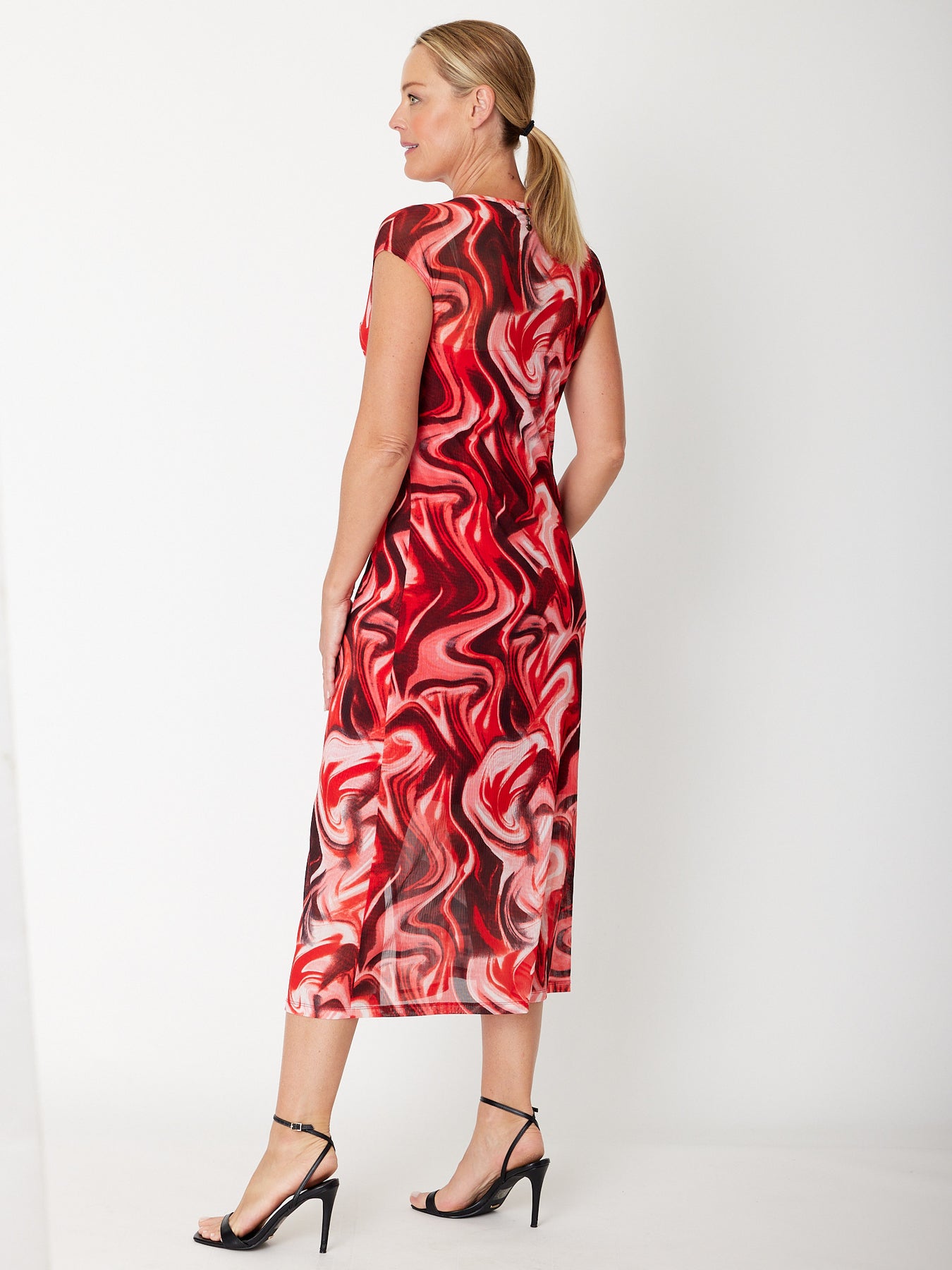Mavi Stretch Mesh Dress - Black/Red - 31350
