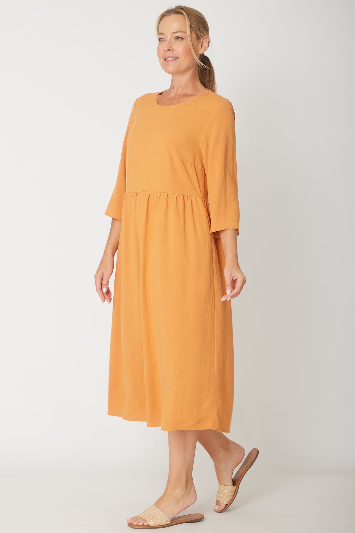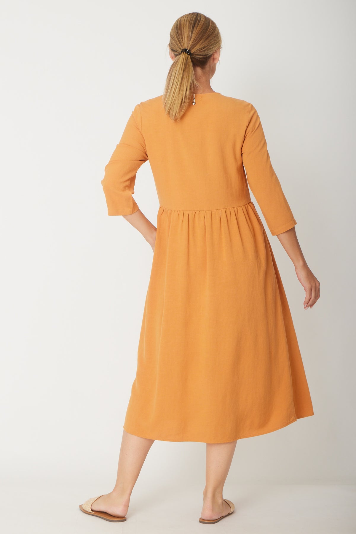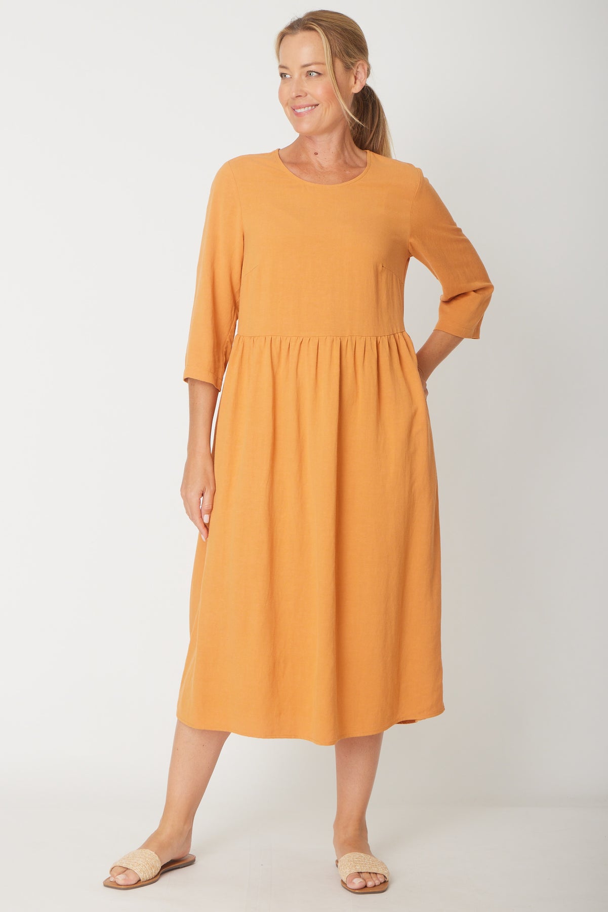 Timeless elegance meets everyday ease with the Anya Dress. Featuring a classic round neckline, flattering 3/4 sleeves, and practical side pockets, this midi dress blends style and function effortlessly. Crafted from premium non-stretch fabric, it offers a beautifully structured silhouette that holds its shape. With a relaxed fit designed to flatter all body shapes, the Anya Dress is perfect for both professional settings and special occasions.