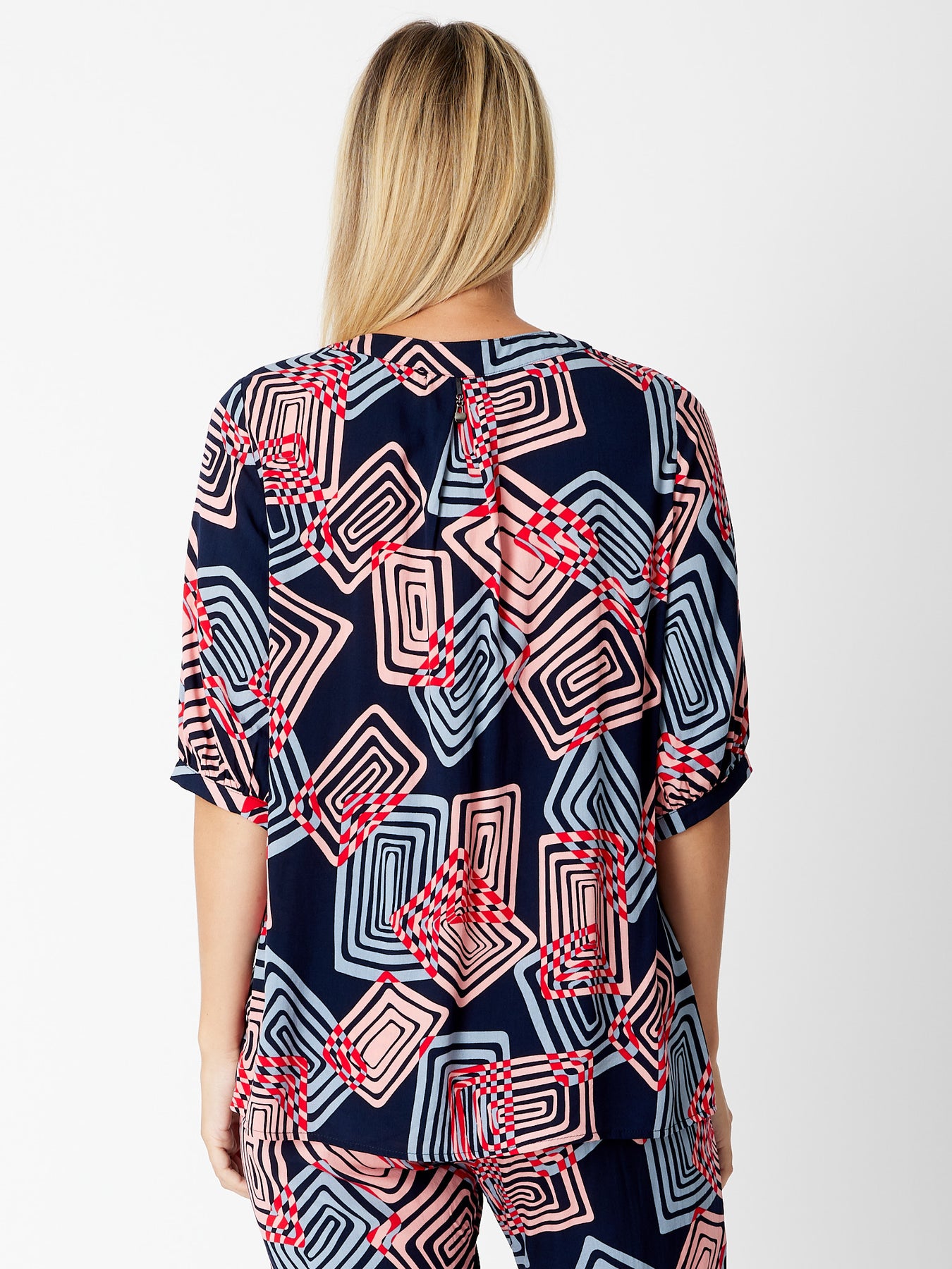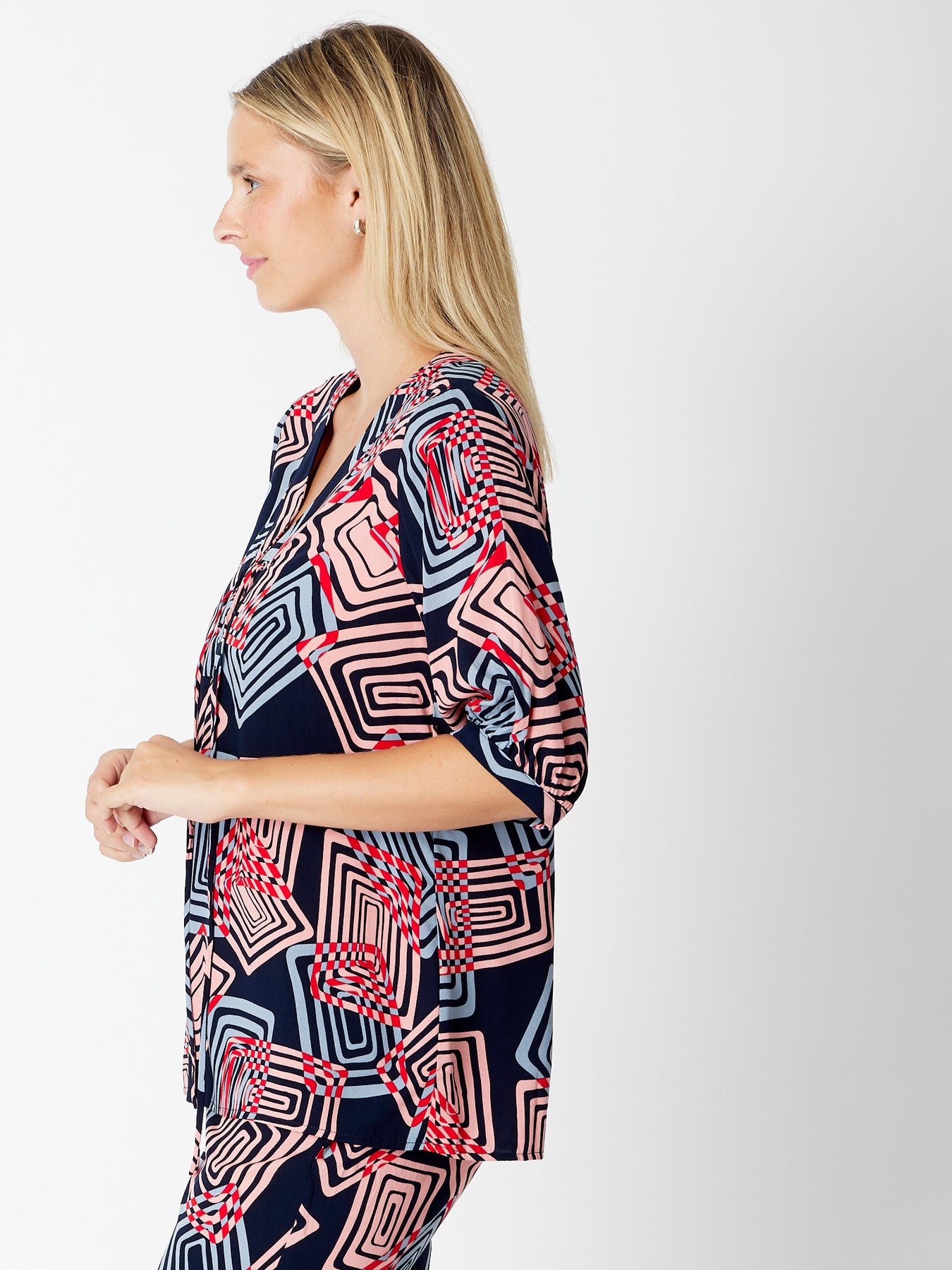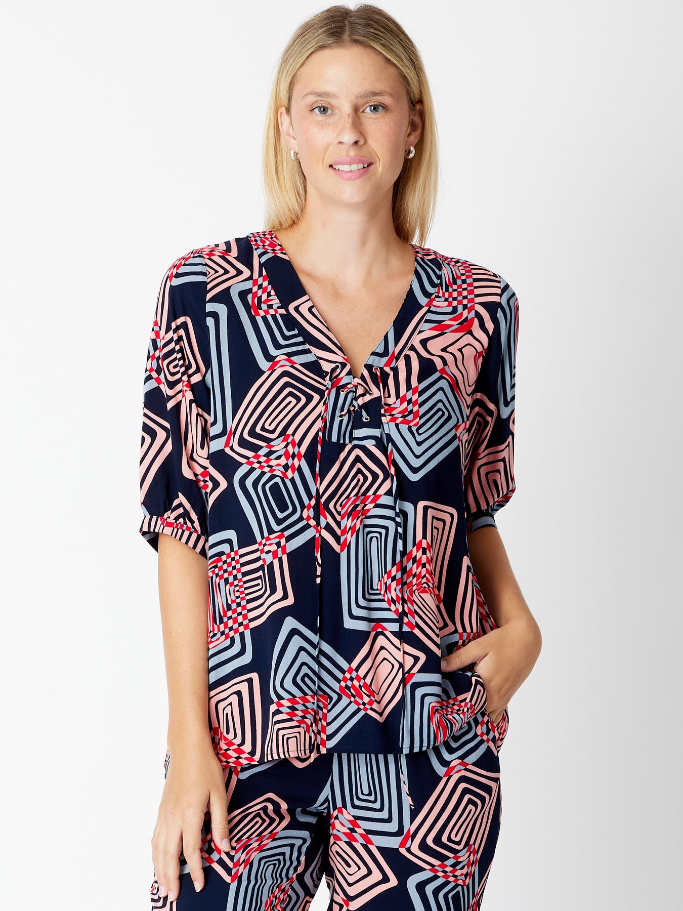 This Lace Up Print Top features a stylish button-through front and convenient tabs that let you roll the sleeves up or down for versatile looks. Crafted from non-stretch, opaque rayon, it ensures comfortable fit with true-to-size accuracy. Elevate your wardrobe with this effortlessly chic and adaptable piece.