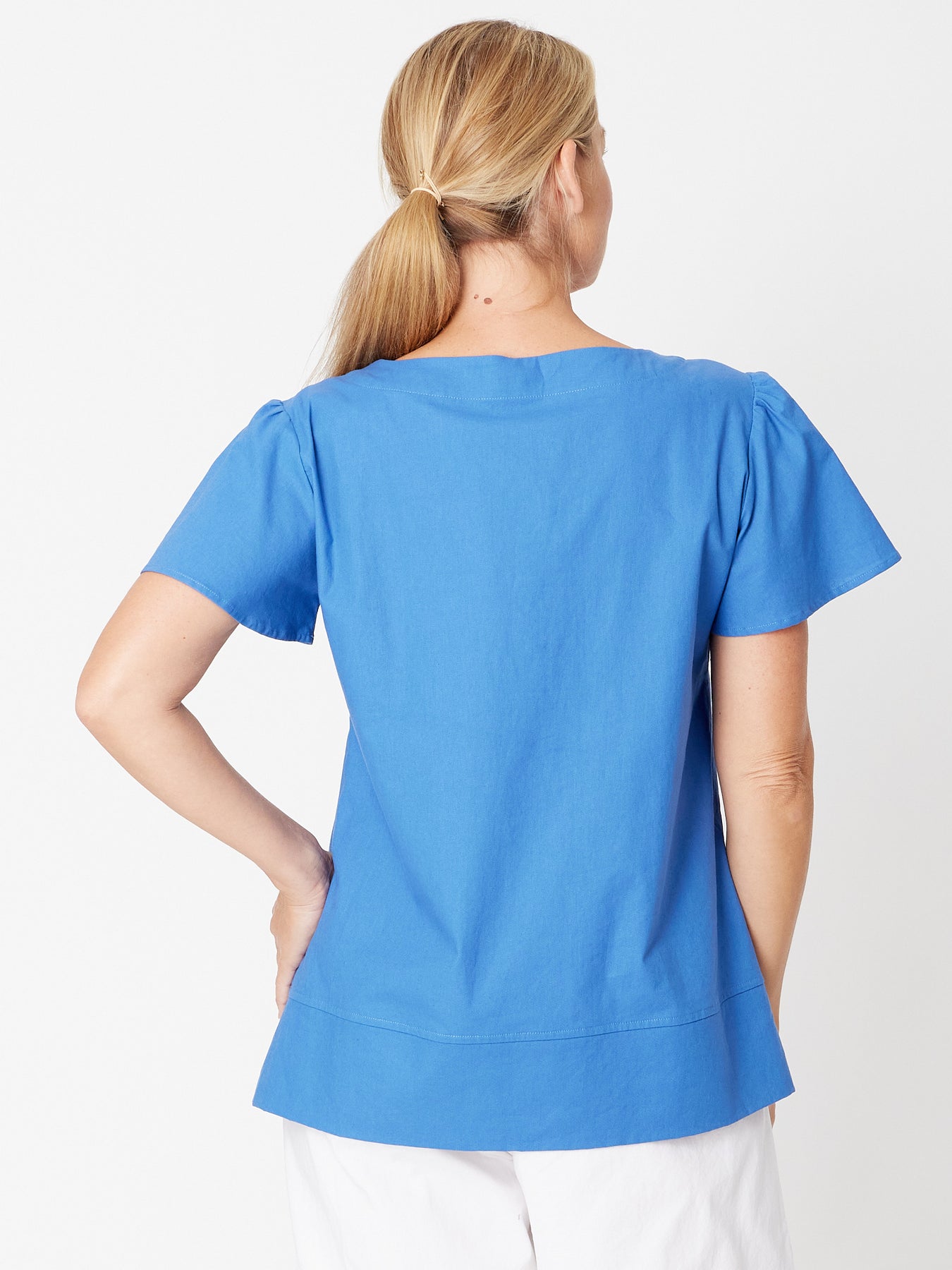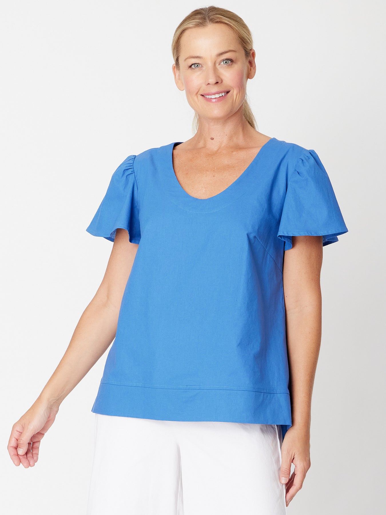 Embrace effortless style with this scoop neck cotton linen top featuring delicate fluted sleeves and a flattering swing body. Its relaxed fit ensures comfort throughout the day, while the breathable non-stretch fabric adds natural texture and durability. Perfect for both casual outings and refined looks, this top combines timeless design with modern ease.