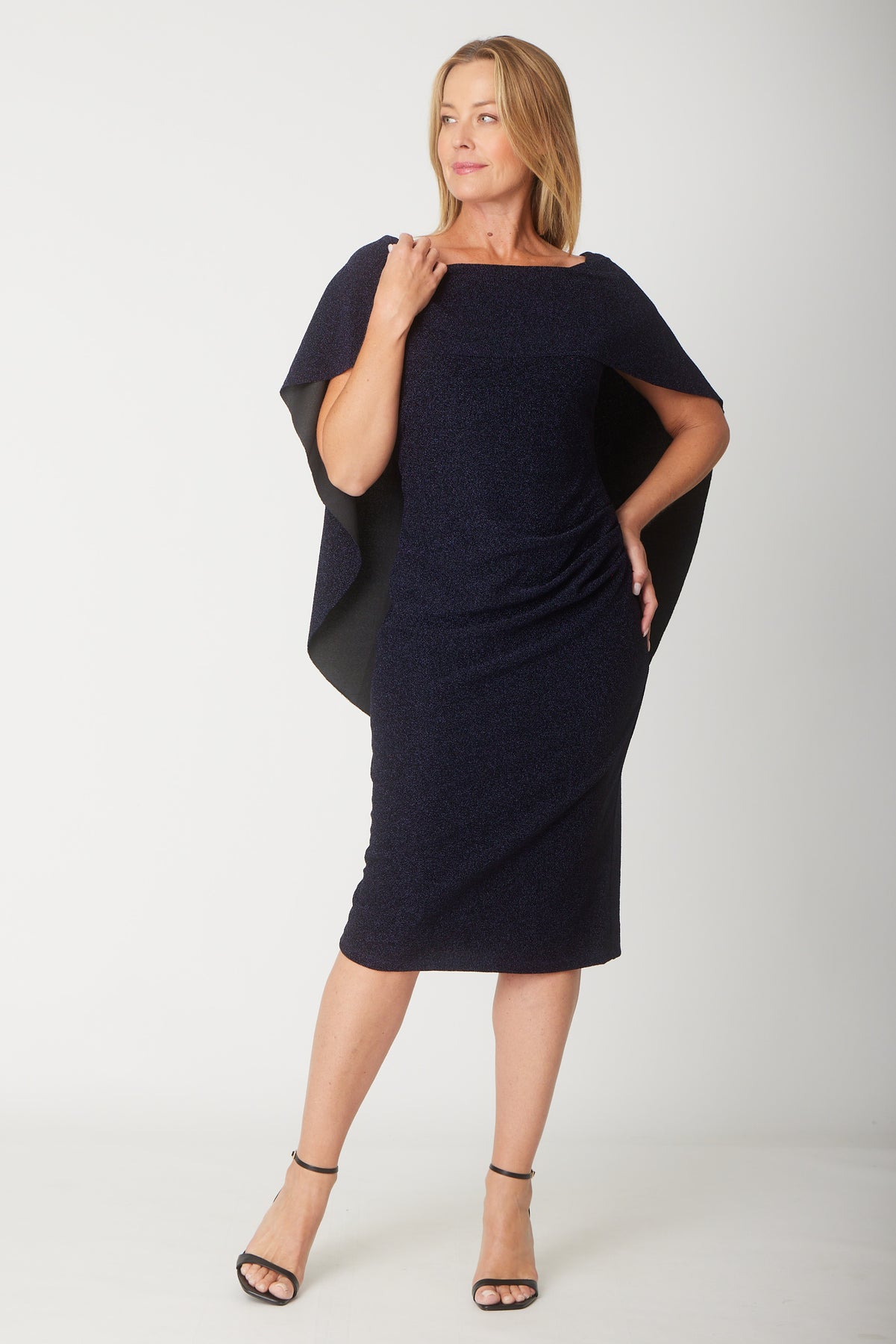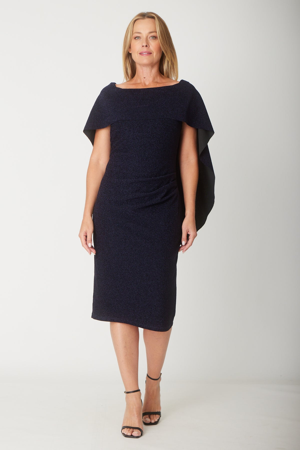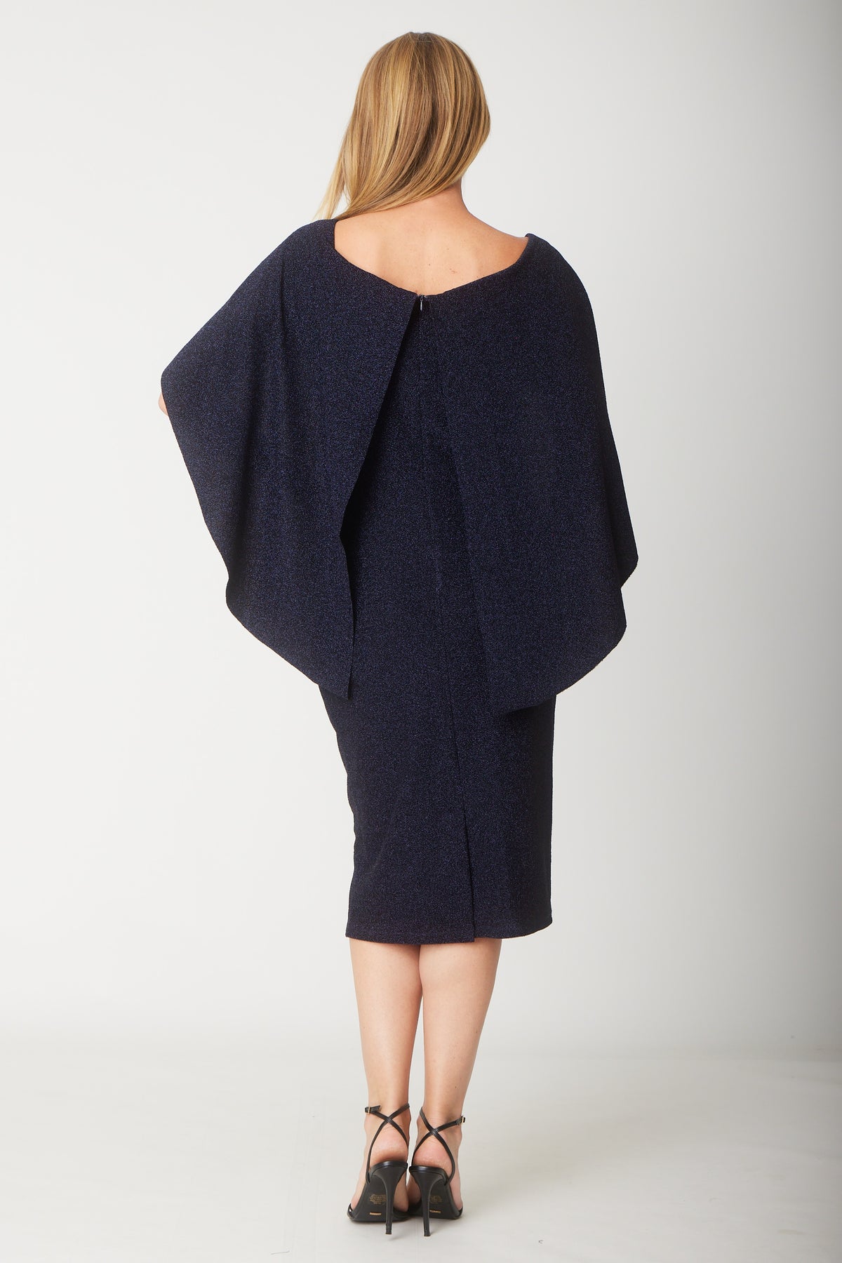 Cape Lurex Dress - Navy - 31528