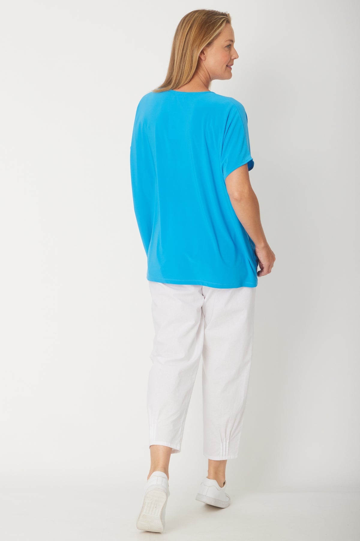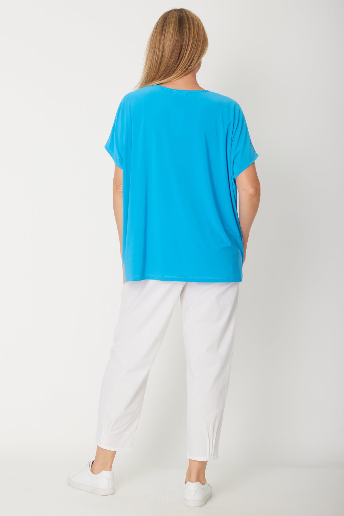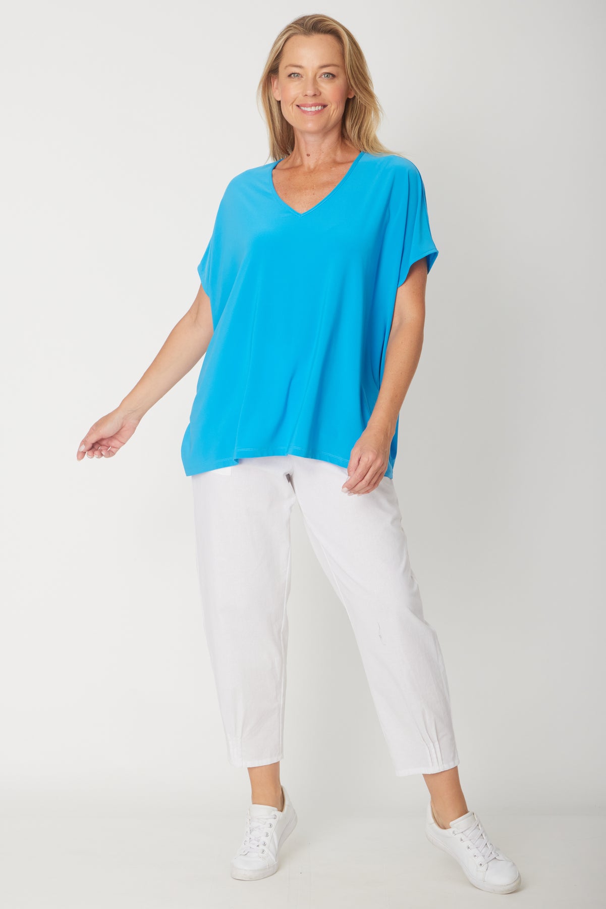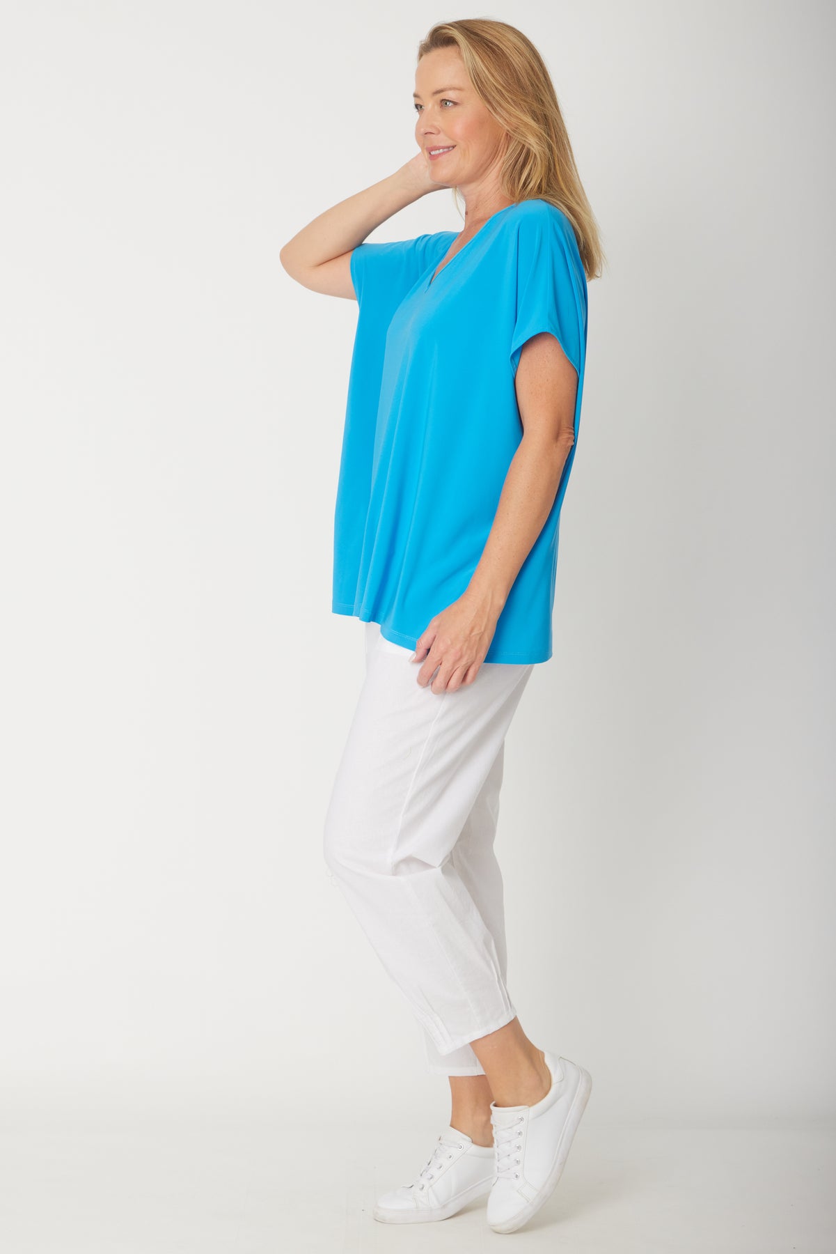 Experience effortless elegance with the Core Lux Jersey. Crafted from premium stretch jersey, this relaxed oversized top features a flattering V-neck and a longer length that drapes beautifully. Its almost kimono-inspired shape offers a sophisticated, dressy look while ensuring comfort and ease of movement. Perfect for elevating your wardrobe with a versatile piece that blends style and softness.  We suggest sizing down if you are in between sizes.  It is a very generous fit.