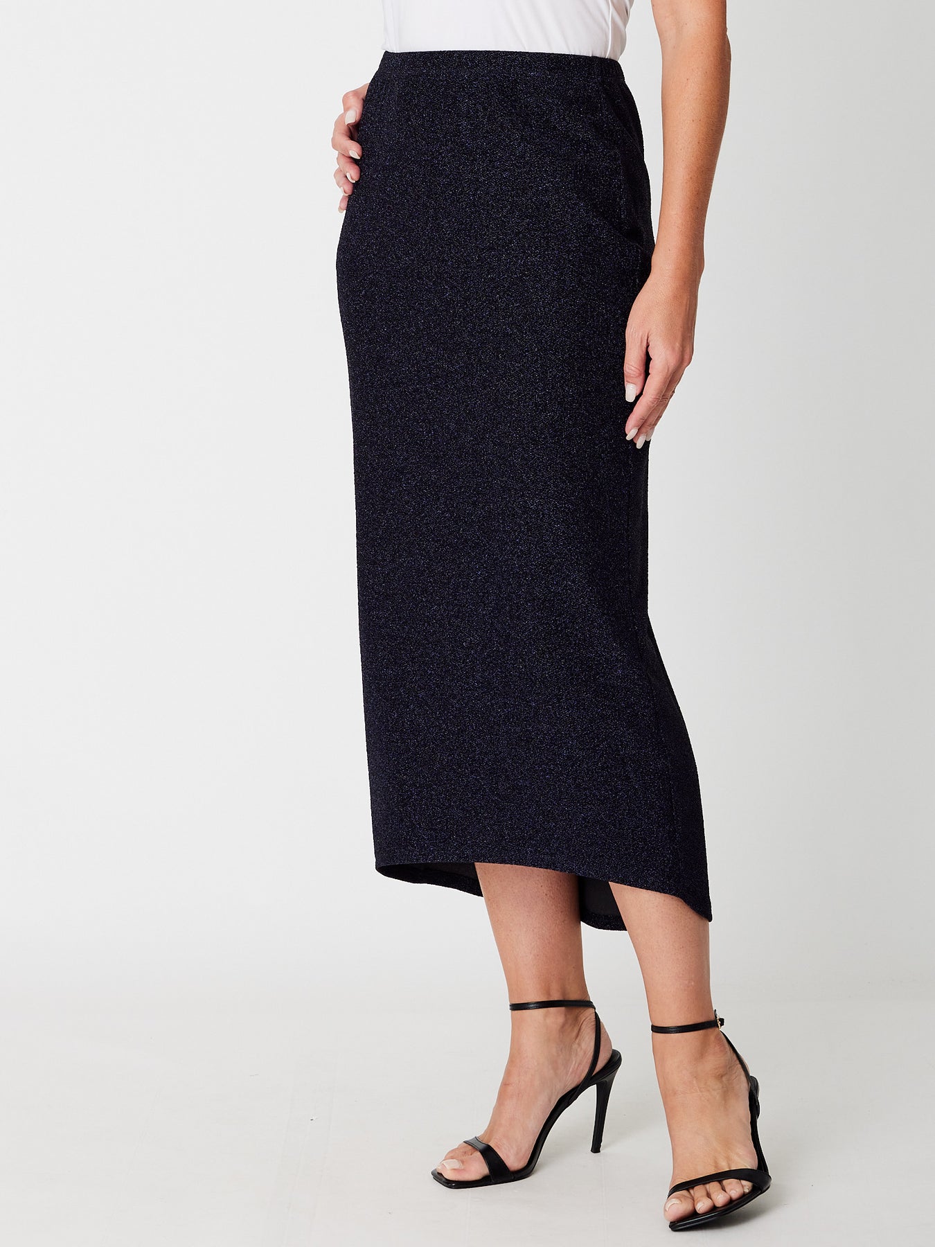 Turn heads with our Lurex Stretch Pull-On Skirt – where comfort meets elegance. Crafted from flexible, shimmering fabric, this skirt features a subtle high-low hemline that adds a touch of modern flair. Designed for special occasions, it offers a flattering silhouette that moves with you, making it as comfortable as it is stylish. Perfect for adding a little sparkle to your next event.